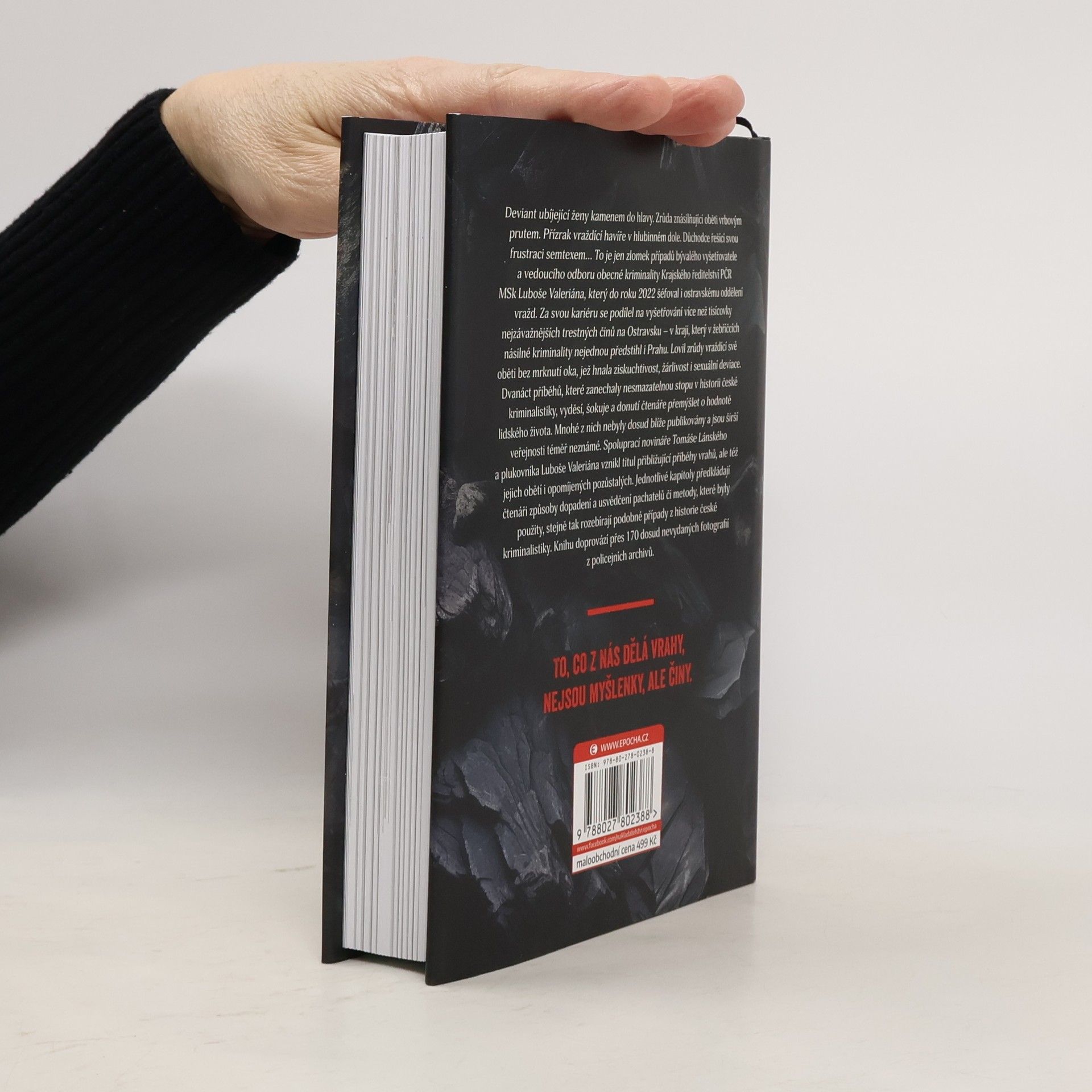 Deviant ubíjející ženy kamenem do hlavy. Zrůda znásilňující oběti vrbovým prutem. Přízrak vraždící havíře v hlubinném dole. Důchodce řešící svou frustraci semtexem… To je jen zlomek případů bývalého vyšetřovatele a vedoucího odboru obecné kriminality Krajského ředitelství PČR MSk Luboše Valeriána, který do roku 2022 šéfoval i ostravskému oddělení vražd. Za svou kariéru se podílel na vyšetřování více než tisícovky nejzávažnějších trestných činů na Ostravsku – v kraji, který v žebříčcích násilné kriminality nejednou předstihl i Prahu. Lovil zrůdy vraždící své oběti bez mrknutí oka, jež hnala ziskuchtivost, žárlivost i sexuální deviace. Dvanáct příběhů, které zanechaly nesmazatelnou stopu v historii české kriminalistiky, vyděsí, šokuje a donutí čtenáře přemýšlet o hodnotě lidského života. Mnohé z nich nebyly dosud blíže publikovány a jsou širší veřejnosti téměř neznámé. Spoluprací novináře Tomáše Lánského a plukovníka Luboše Valeriána vznikl titul přibližující příběhy vrahů, ale též jejich obětí i opomíjených pozůstalých. Jednotlivé kapitoly předkládají čtenáři způsoby dopadení a usvědčení pachatelů či metody, které byly použity, stejně tak rozebírají podobné případy z historie české kriminalistiky. Knihu doprovází přes 170 dosud nevydaných fotografií z policejních archivů.