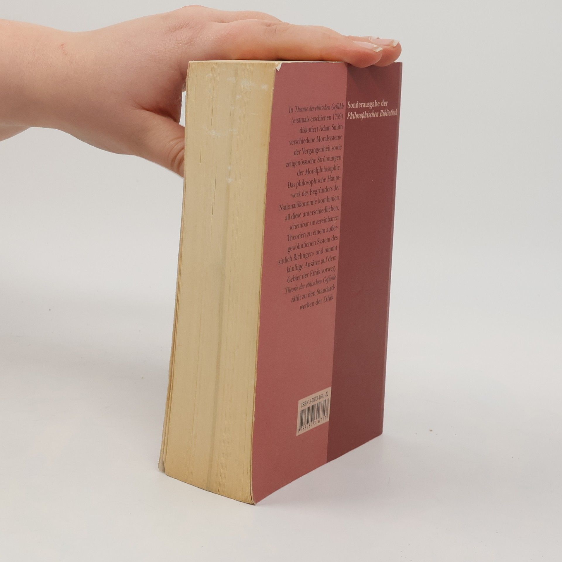 Sonderausgabe der Philosophischen Bibliothek Die „Theorie der ethischen Gefühle“, das philosophische Hauptwerk des schottischen Moralphilosophen und Begründers der Nationalökonomie Adam Smith (1723-1790), stammt aus dem Jahre 1759 und nimmt eine außerordentliche Position innerhalb der Entwicklungsgeschichte der Ethik ein. Um seine Theorie zu belegen, untersucht Smith Moralsysteme der Vergangenheit, übt Kritik an zeitgenössischen Richtungen der Moralphilosophie und nimmt zukünftige wichtige Ansätze auf dem Gebiet der Ethik vorweg. Sein Werk ist somit Sammelplatz heterogenster, scheinbar konträrer Richtungen der Moralphilosophie, es kombiniert unterschiedliche Theorien zu einem bemerkenswerten System des 'sittlich Richtigen'. Einer der zentralen Begriffe der Smithschen Ethik ist dabei die 'Sympathie', ergänzt durch die Idee eines unparteiischen Zuschauers. Die Fähigkeit zur Anteilnahme ist für Smith die Vorraussetzung jeder sittlichen Wertung und Beurteilung. Smiths Standardwerk der Ethik wurde wiederholt für die Lebendigkeit der Darstellung und die Eleganz und Flüssigkeit des Stils gelobt. Der Band berücksichtigt die umfangreichen Erweiterungen der sechsten Auflage aus dem Jahre 1790 und zeichnet sich durch eine ausführliche Übersicht über die wesentlichen philosophischen Termini und ihre Bedeutung bei Smith aus.