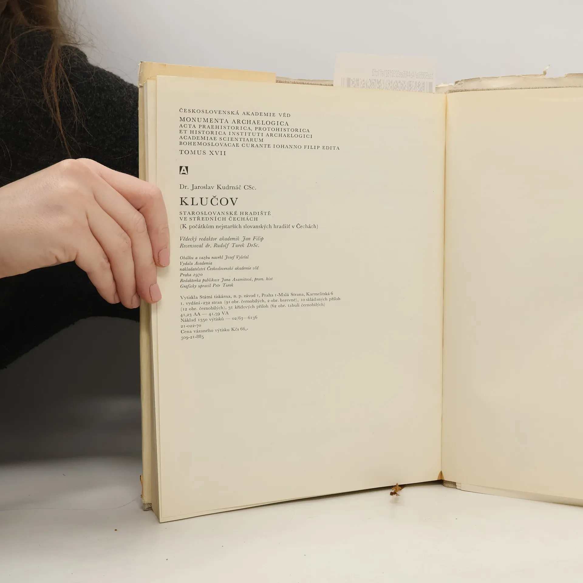 Staroslovanské hradiště ve středních Čechách. K počátkům nejstarších slovanských hradišť v Čechách. Původní celoplátěná vazba bez přebalu, 227 stran, 10 skládaných příloh a 31 příloh křídových.