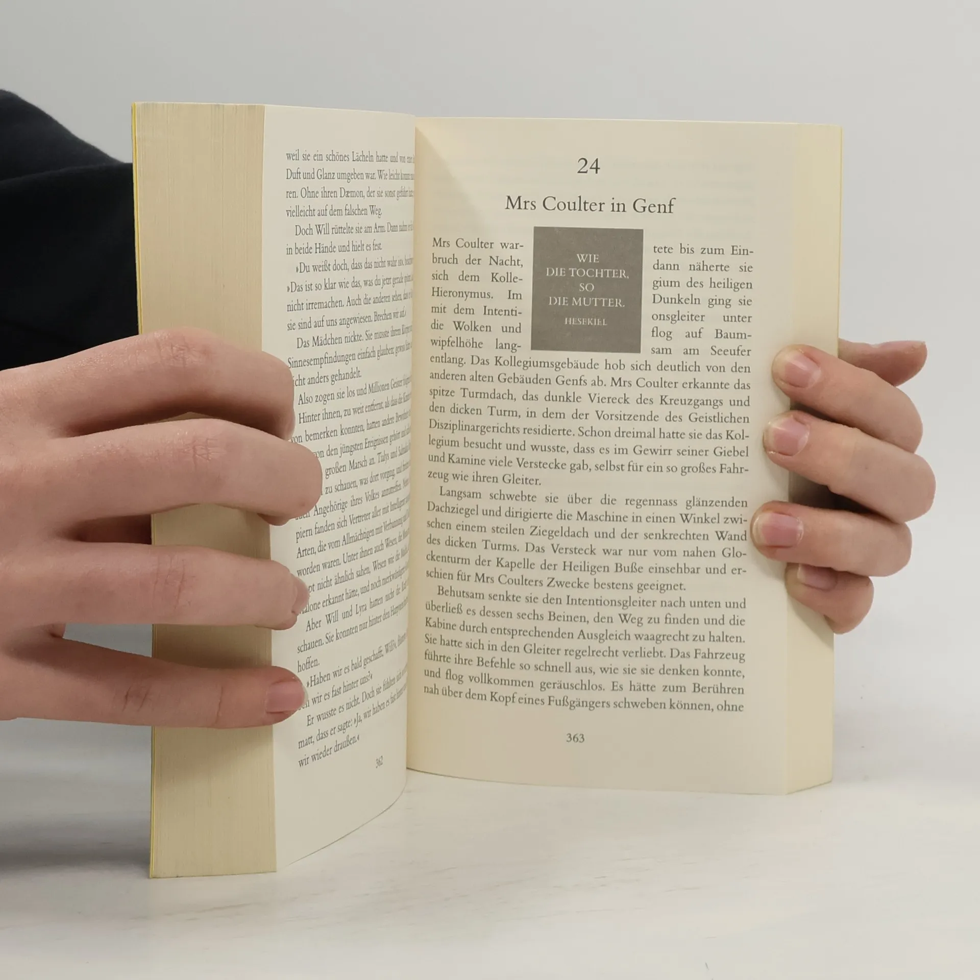 In dieser Trilogie von Philip Pullman wird die Geschichte von Lyra Belacqua erzählt, einem jungen Mädchen, das in einer alternativen Welt lebt, in der Menschen von tierischen Begleitern, den sogenannten Daemons, begleitet werden. Die Handlung beginnt mit Lyras Entdeckung eines geheimen Plans, der die Entführung von Kindern beinhaltet, was sie auf eine gefährliche Reise führt. Sie begegnet einer Vielzahl von Charakteren, darunter der mysteriöse Lord Asriel, der die Grenzen zwischen den Welten überschreitet, und die weise Hexe Serafina Pekkala. Die Trilogie behandelt zentrale Themen wie den Kampf zwischen Gut und Böse, die Suche nach Wahrheit und die Bedeutung von Freundschaft und Loyalität. Sie erforscht auch philosophische und religiöse Fragestellungen, insbesondere in Bezug auf die Konzepte von Seele und freiem Willen. Die Erzählung ist geprägt von einer reichen Symbolik und einer tiefgründigen Weltgestaltung, die sowohl junge als auch erwachsene Leser anspricht. Die Bände sind miteinander verwoben und bieten einen umfassenden Blick auf Lyras Entwicklung sowie die Herausforderungen, denen sie und ihre Begleiter gegenüberstehen. Die Trilogie umfasst die Titel „Der Goldene Kompass“, „Das Magische Messer“ und „Das Bernstein-Teleskop“.