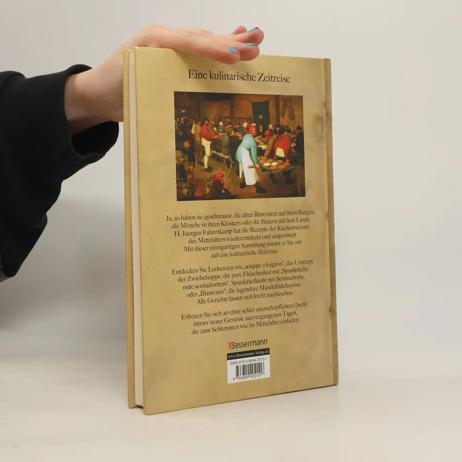 Schlemmen wie die alten Rittersleut Mal ganz anders kochen - und zwar bewährte Klassiker der Mittelalterküche. Jürgen Fahrenkamp hat sie entdeckt und natürlich ausprobiert. Das köstoiche„Steynbrodt mit guot gruibensmaltz“, die wärmende Suppe „Ain suben vonn Lombardey“, auch den „Böhmisch Pratem von Rind“ und süße Köstlichkeiten wie „Epffel in salse mite Zimmet“ - das sind die Schätze aus vergangenen Tagen. Diese Rezeptsammlung ist eine schier faszinierende Quelle für ganz neue Genüsse, die zum ausgiebigen Schlemmen einlädt.