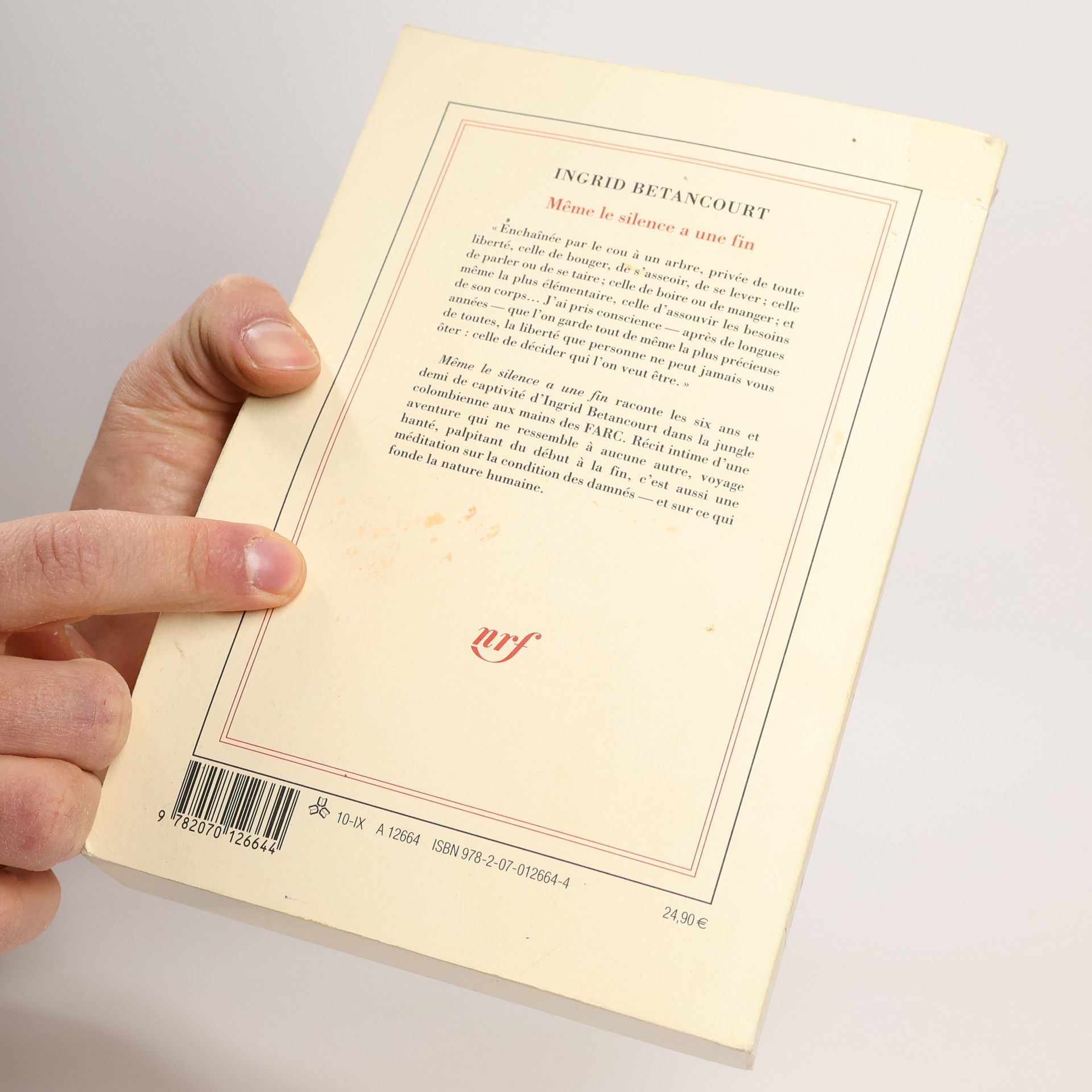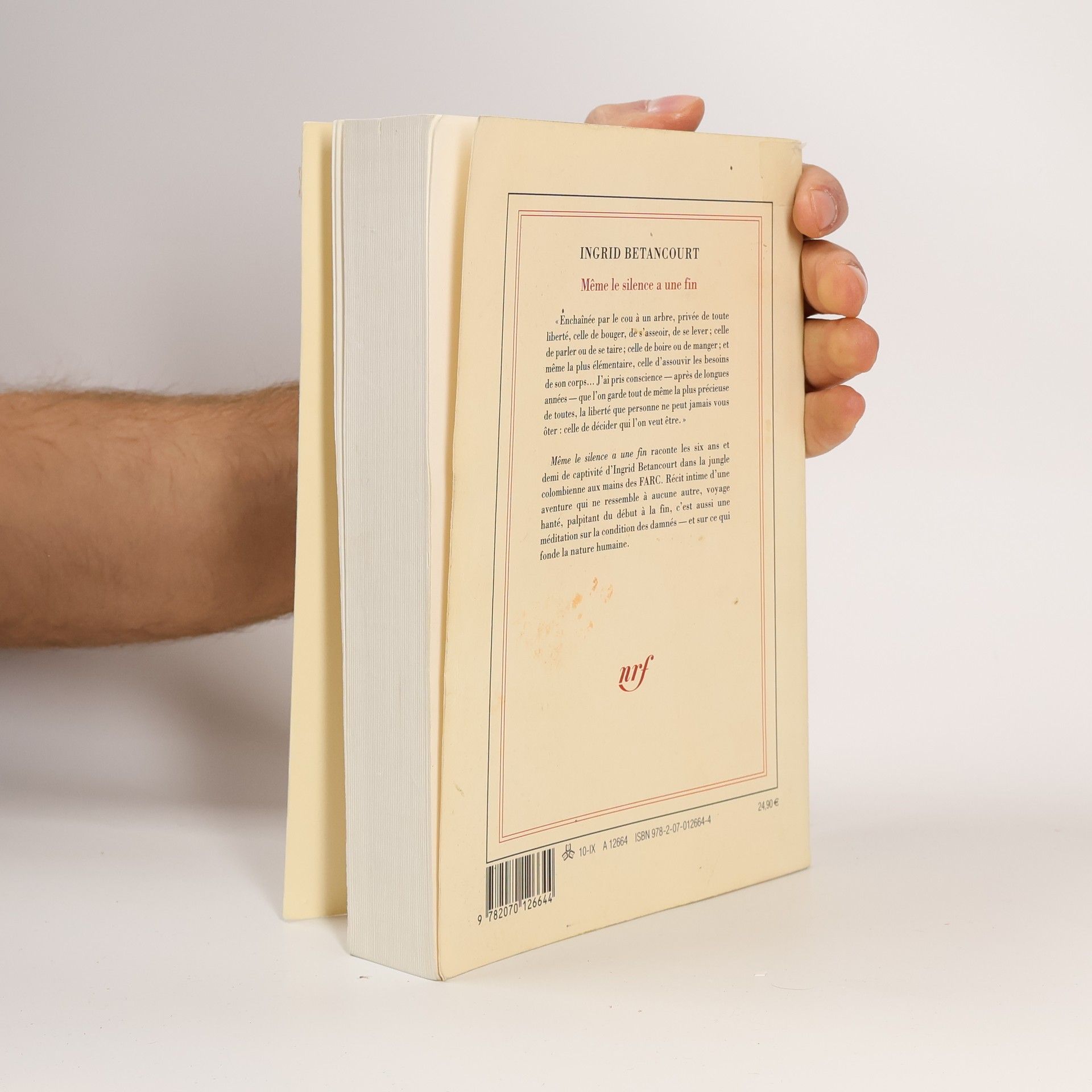 «Enchaînée par le cou à un arbre, privée de toute liberté, celle de bouger, de s'asseoir, de se lever ; celle de parler ou de se taire ; celle de boire ou de manger ; et même la plus élémentaire, celle d'assouvir les besoins de son corps... J'ai pris conscience – après de longues années – que l'on garde tout de même la plus précieuse de toutes, la liberté que personne ne peut jamais vous ôter : celle de décider qui l'on veut être.» Même le silence a une fin raconte les six ans et demi de captivité d'Ingrid Betancourt dans la jungle colombienne aux mains des FARC. Récit intime d'une aventure qui ne ressemble à aucune autre, voyage hanté, palpitant du début à la fin, c'est aussi une méditation sur la condition des damnés – et sur ce qui fonde la nature humaine.