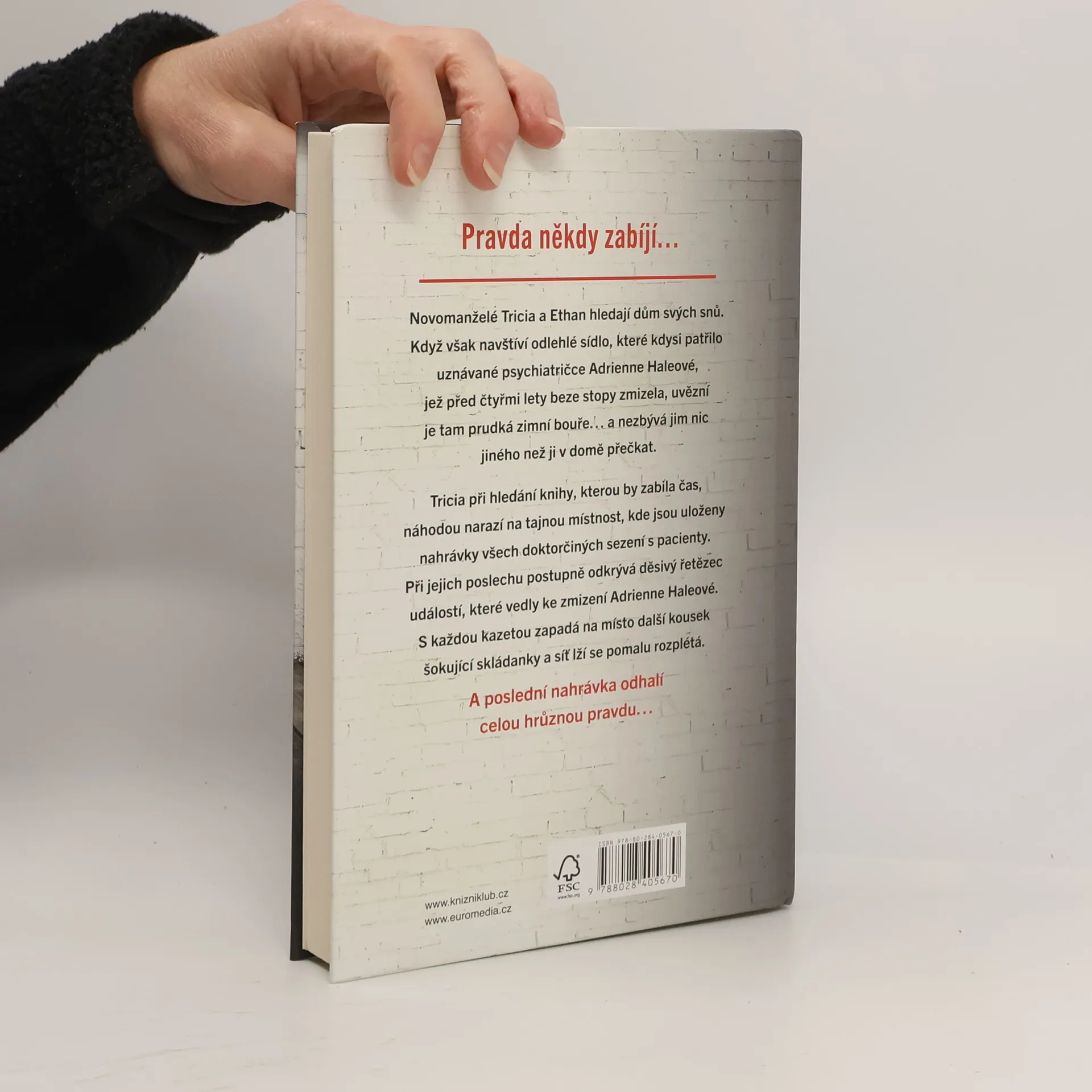 Novomanželé Tricia a Ethan hledají dům svých snů. Když však navštíví odlehlé sídlo, které kdysi patřilo uznávané psychiatričce Adrienne Haleové, jež před čtyřmi lety beze stopy zmizela, uvězní je tam prudká zimní bouře… a nezbývá jim nic jiného než ji v domě přečkat. Tricia náhodou narazí na tajnou místnost, kde jsou uloženy nahrávky všech doktorčiných sezení s pacienty. Při jejich poslechu postupně odkrývá děsivý řetězec událostí, které vedly ke zmizení doktorky Haleové. S každou kazetou zapadá na místo další kousek šokující skládanky a síť lží se pomalu rozplétá. A poslední nahrávka odhalí celou hrůznou pravdu.