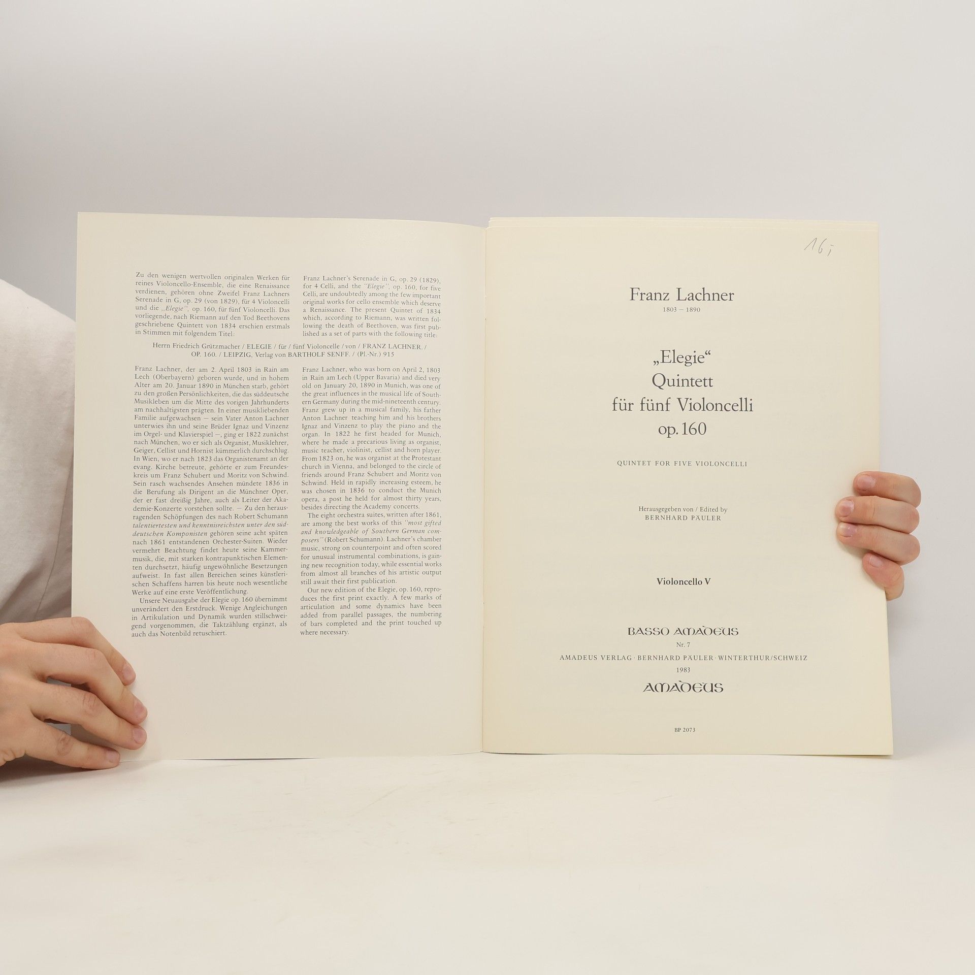 "Elegie" für fünf Violoncelli, Franz Lachner