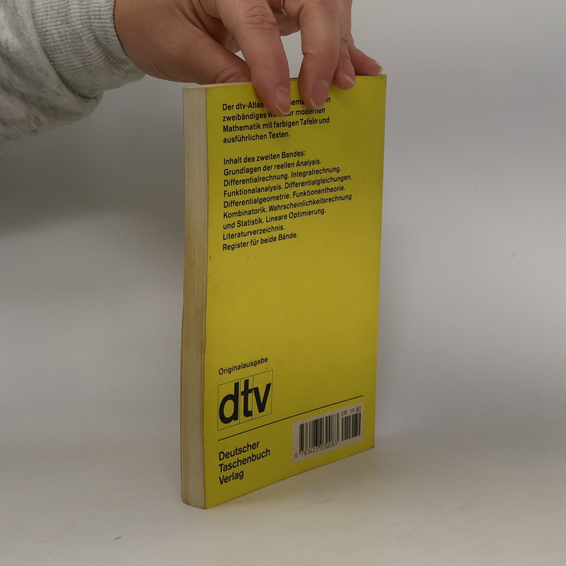 Der ›dtv-Atlas Mathematik‹ gibt in zwei Bänden einen Überblick über den Stand der modernen Mathematik und ihrer Ergebnisse. Die Gliederung geht vom Gesamtbereich der Mathematik aus und enthält alle wesentlichen Teildisziplinen mit den dazugehörigen Theorien. Band 2: Grundlagen der reellen Analysis. Differentialrechnung. Integralrechnung. Funktionalanalysis. Differentialgleichungen. Differentialgeometrie. Funktionstheorie. Kombinatorik. Wahrscheinlichkeitsrechnung und Statistik. Lineare Optimierung.