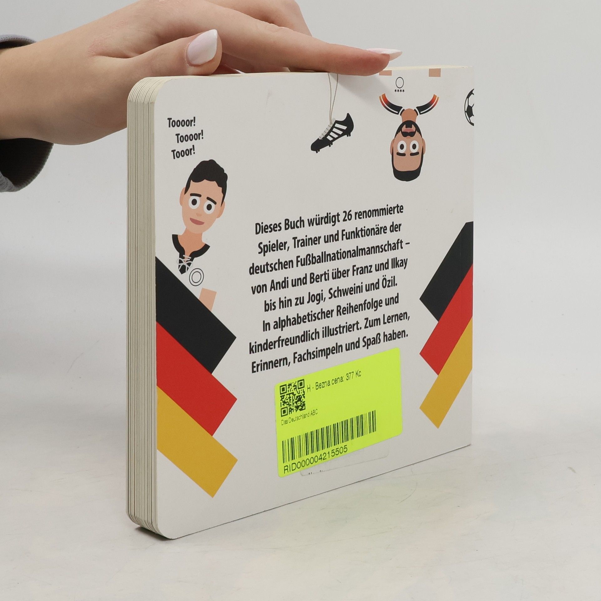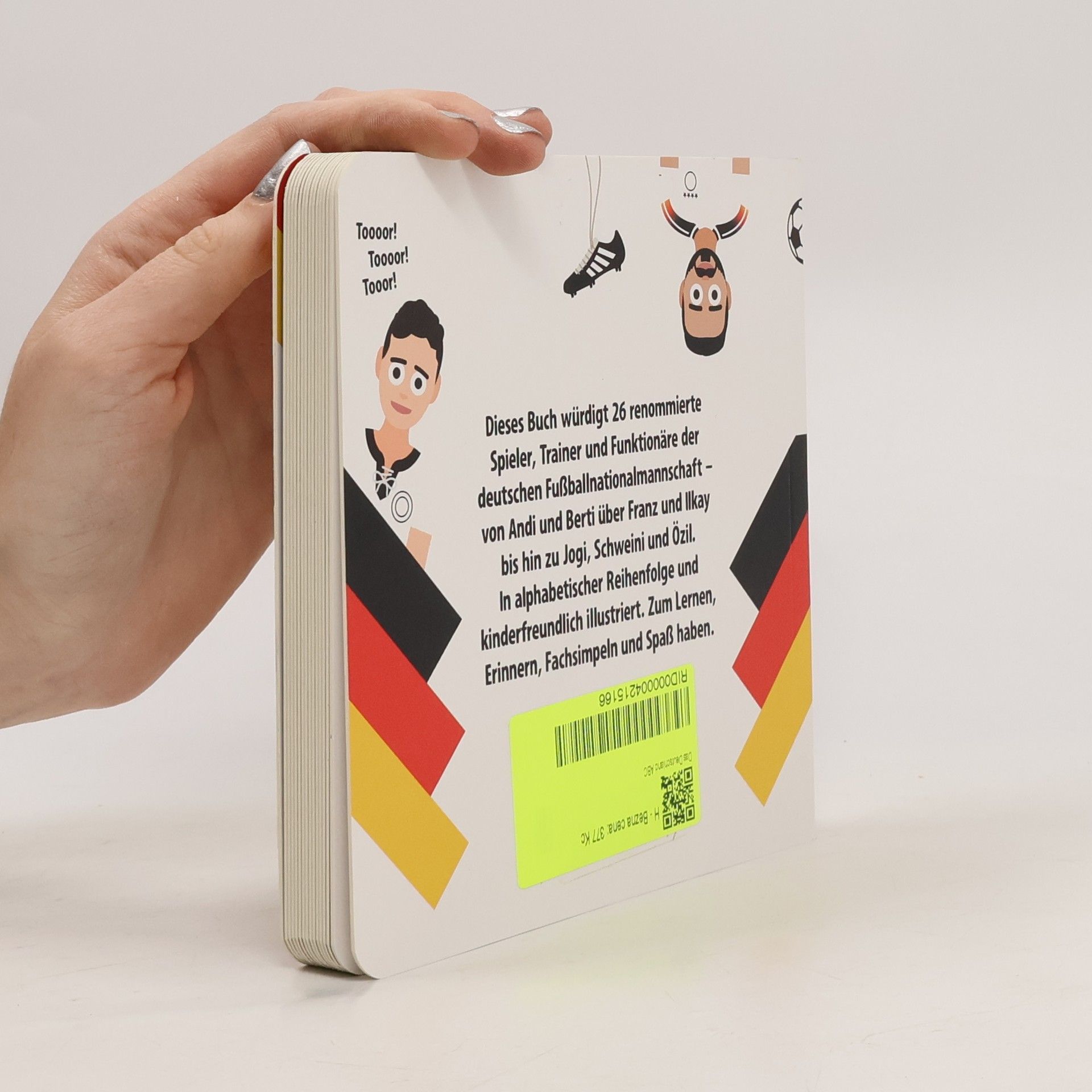 Das Deutschland ABC. Dieses Buch würdigt 26 renommierte Spieler, Trainer und Funktionäre der deutschen Fußballnationalmannschaft – von Andi und Berti über Franz und Ilkay bis hin zu Jogi, Schweini und Özil. In alphabetischer Reihenfolge und kinderfreundlich illustriert. Zum generationsübergreifenden Lernen, Erinnern, Fachsimpeln und Spaß haben.