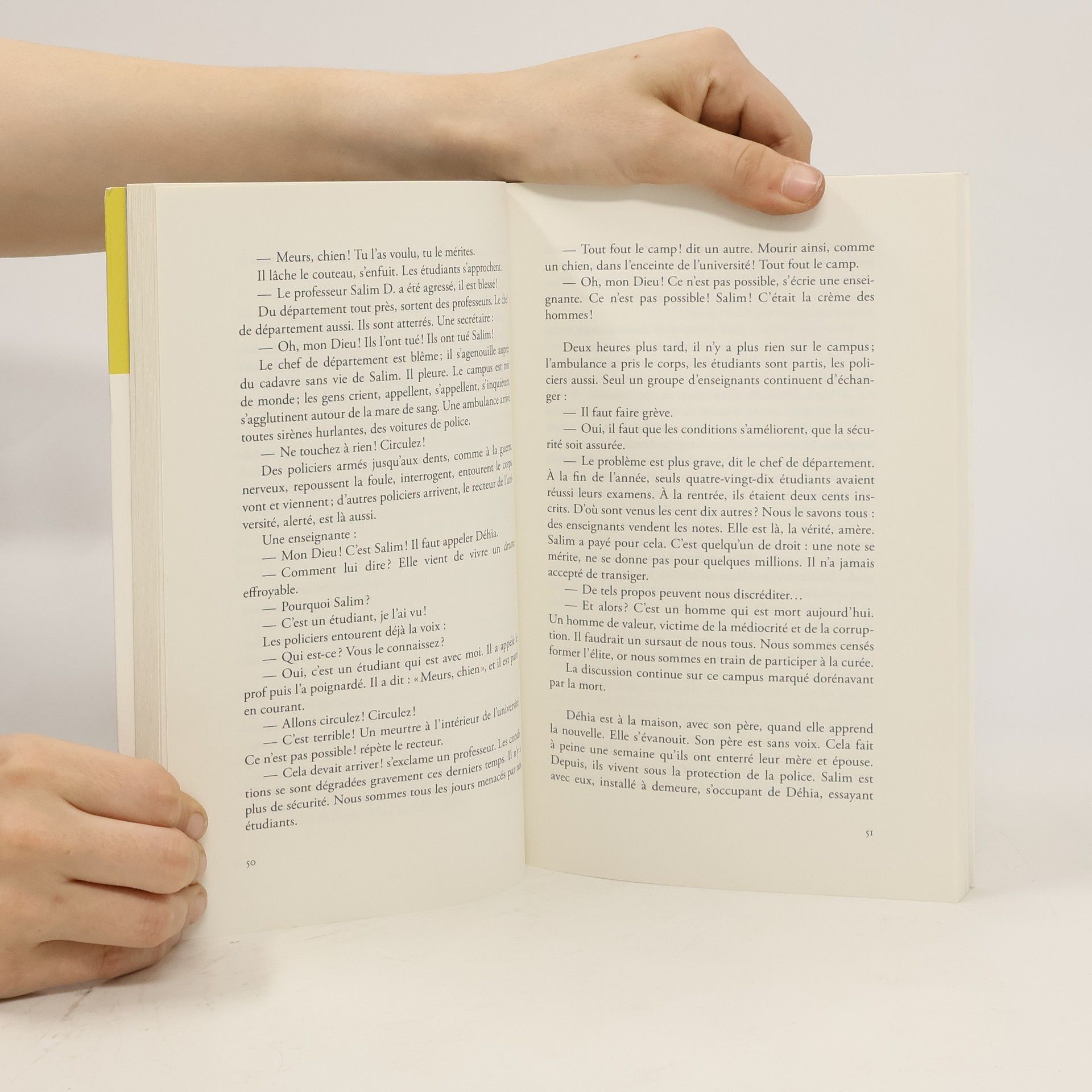 Déhia, jeune femme universitaire, promise à un avenir radieux, se heurte dans sa propre famille à l’extrême violence de l’histoire récente algérienne. Belle femme dans une société où la religion, la corruption, la violence tiennent lieu de boussole, comment peut-elle vivre, comment tracer sa voie sans se perdre ? Adel, cadre dans une entreprise, s’accroche à ses idéaux, essaie d’échapper aux pressions, petites et grandes, avant de tenter sa chance loin, très loin... Deux mémoires saccagées, une femme et un homme au passé amer qui prennent le chemin de la vie, malgré tout, ensemble. Un deuxième roman, après Le bus dans la ville paru en 2008. Un récit d’une grande sensibilité qui raconte l’histoire douloureuse, d’un couple d’Algériens, des êtres qui tentent de mener leur vie envers et contre tout. Portrait de la société algérienne contemporaine, dans sa peine et sa sensibilité lumineuse. Dans une langue tout en finesse, l’auteur brosse des portraits exemplaires et uniques. Prix Ouest-France/Etonnants voyageurs 2011