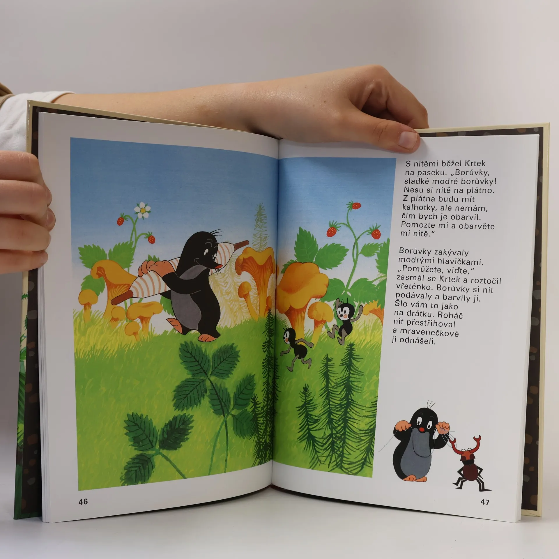 Jedna z nejznámějších a nejpůvabnějších knížek o tom, jak se dílo podaří, když se všichni spojí a každý dělá, co umí. Krtek zatouží po krásných modrých kalhotkách, sám ale neumí ani tkát, ani stříhat, šít nebo barvit látku. Poprosí tedy o pomoc své kamarády - raka, rákosníčka, žabku, čápa, ježka, pavoučky a mravenečky. Ti mu rádi pomohou, a Krtek se nakonec může radovat z nových kalhotek s velkými kapsami, kam může schovat své malé poklady