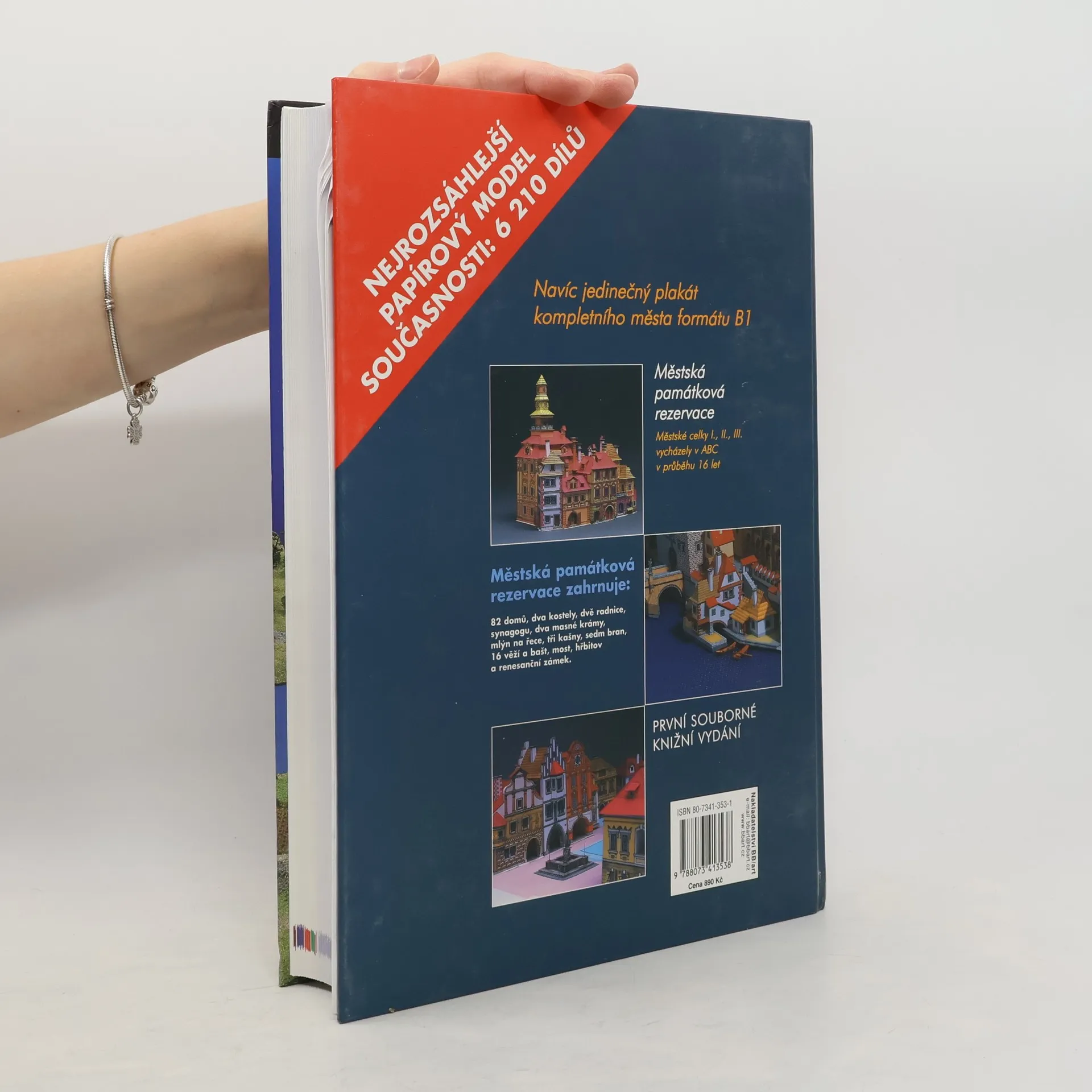 Tři samostatné části Městské památkové rezervace, které nabízí tato jedinečná publikace, původně vycházely na pokračování řadu let v časopise ABC. Nyní vám nabízíme celý tento ojedinělý projekt arch. Richarda Vyškovského v jedné knize. Navíc je k němu připojen dosud nepublikovaný renesanční zámek, který stavbu rozsáhlého papírového městečka završuje. Všechny části mají 82 domů, dva kostely, klášter, dvě radnice, synagogu, dva masné krámy, tři kašny, mlýn na řece, sedm bran, 16 věží a bašt, barbakán, most a hřbitov. Tento jedinečný projekt umožňuje vytvořit nejrozsáhlejší papírový model současnosti. Model obsahuje neuvěřitelných 6 210 dílů.