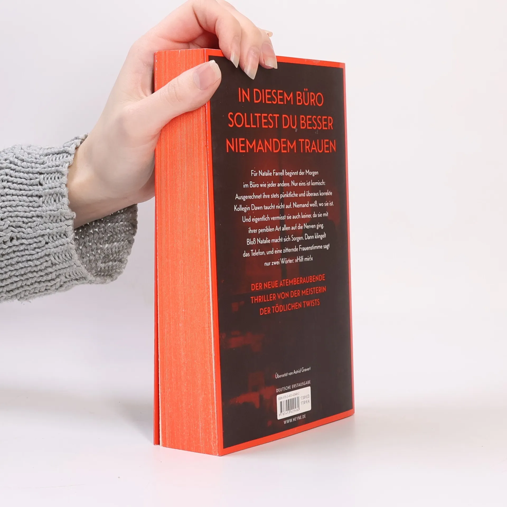 Zwei Frauen. Ein Büro. Ein schreckliches Verbrechen. Mit farbig gestaltetem Buchschnitt in limitierter Erstauflage Dawn Schiff ist seltsam. Darin sind sich ihre Kollegen einig. Sie sagt nie das Richtige. Sie hat keine Freunde. Aber sie ist jeden Morgen um Punkt 8:45 Uhr an ihrem Platz in der Firma, in der sie als Buchhalterin arbeitet. Bis sie eines Morgens nicht auftaucht. Dawns Kollegin Natalie Farrell wundert sich. Dann erhält sie einen anonymen Anruf und fährt zu Dawns Wohnung. Keine Spur von ihrer Kollegin. Doch Natalie bietet sich ein Bild des Grauens. Eins scheint bald klar: Jemand muss Dawn so sehr gehasst haben, dass er sie getötet hat. War es jemand aus ihrem Büro? Je mehr Natalie herausfindet, desto tiefer verstrickt sie sich selbst in ein Netz aus Lügen und Gewalt, aus dem es kein Entkommen gibt. Mit farbig gestaltetem Buchschnitt