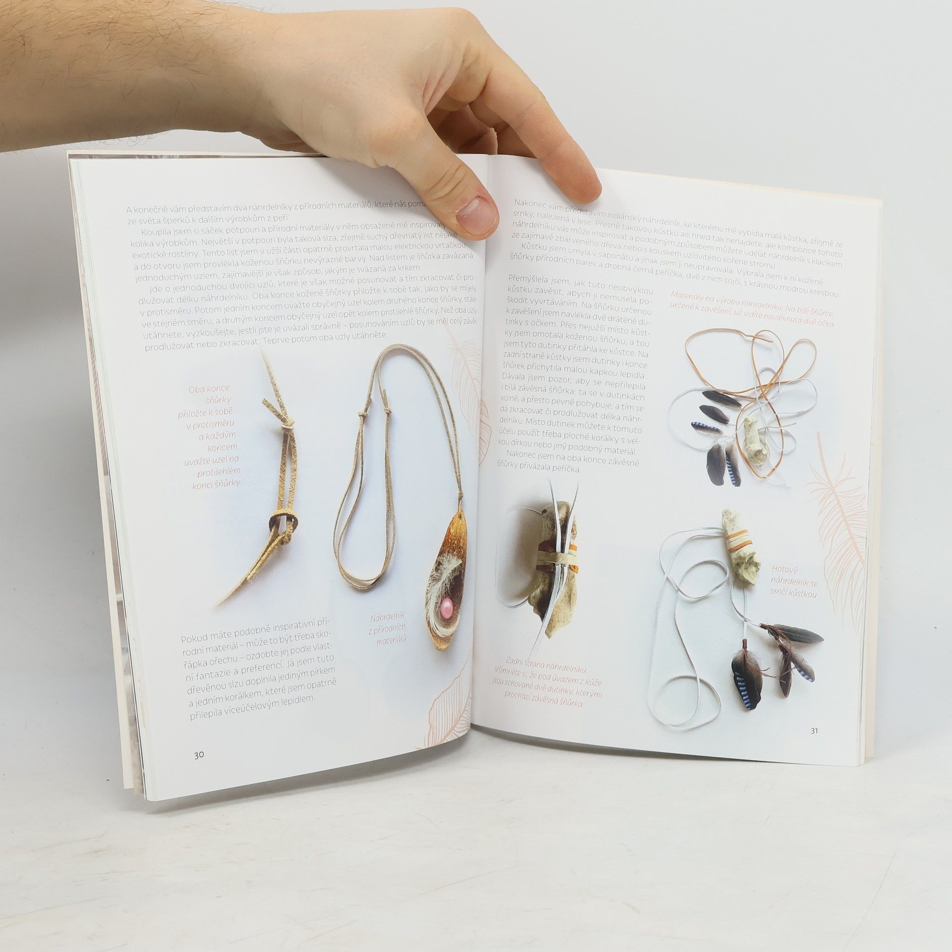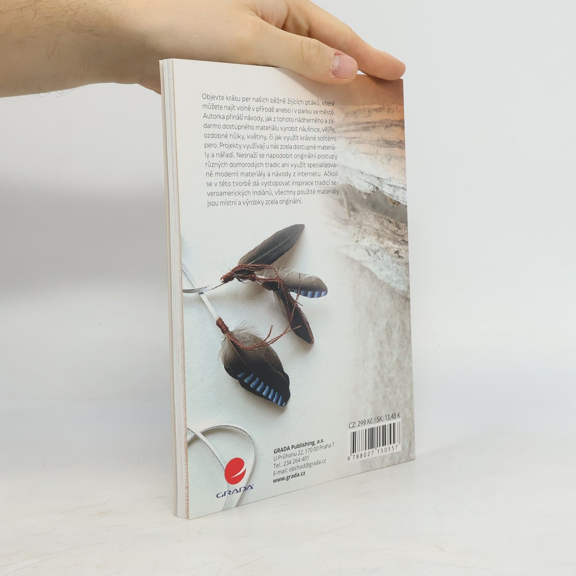 Objevte krásu per našich běžně žijících ptáků, které můžete najít volně v přírodě anebo i v parku ve městě. Autorka přináší návody, jak z tohoto nádherného a zadarmo dostupného materiálu vyrobit náušnice, vějíře, ozdobné hůlky, květiny či jak využít krásné solitérní pero. Projekty využívají u nás běžně dostupné materiály a pomůcky. Nesnaží se napodobit originální postupy různých domorodých tradic ani využít specializované moderní materiály a návody z internetu. Ačkoli se v této tvorbě dá vystopovat inspirace tradicí severoamerických Indiánů, všechny použité materiály jsou místní a výrobky zcela originální.