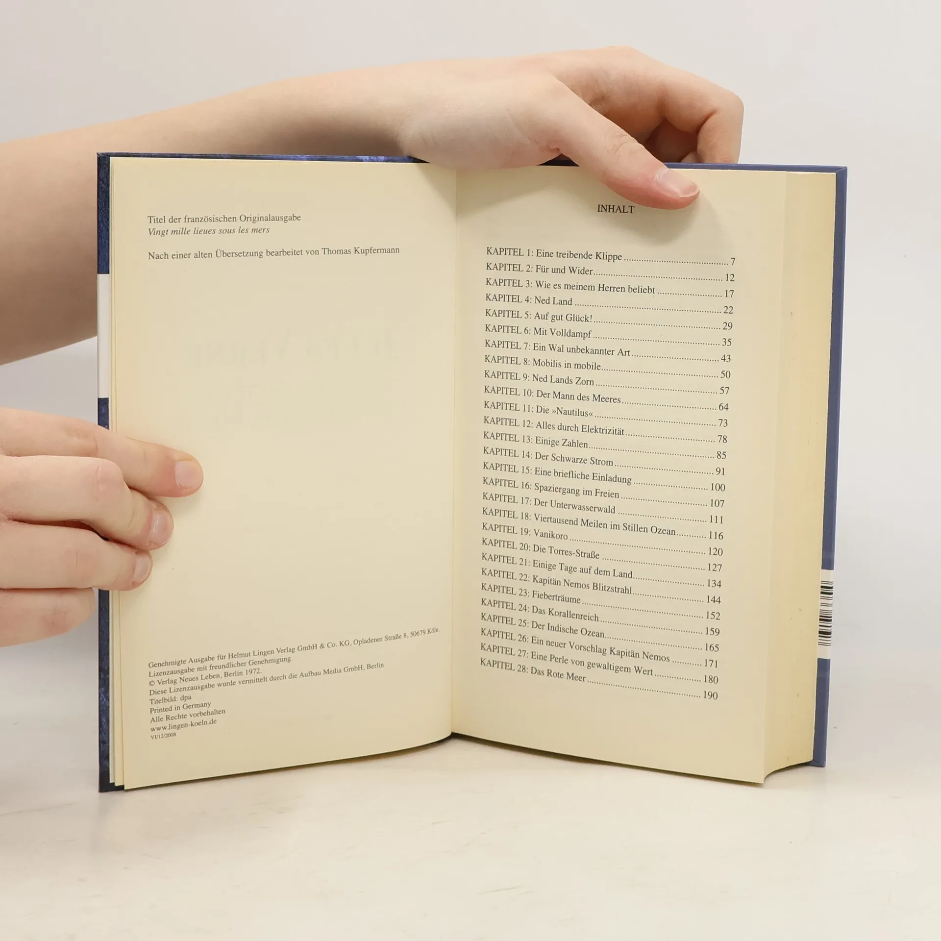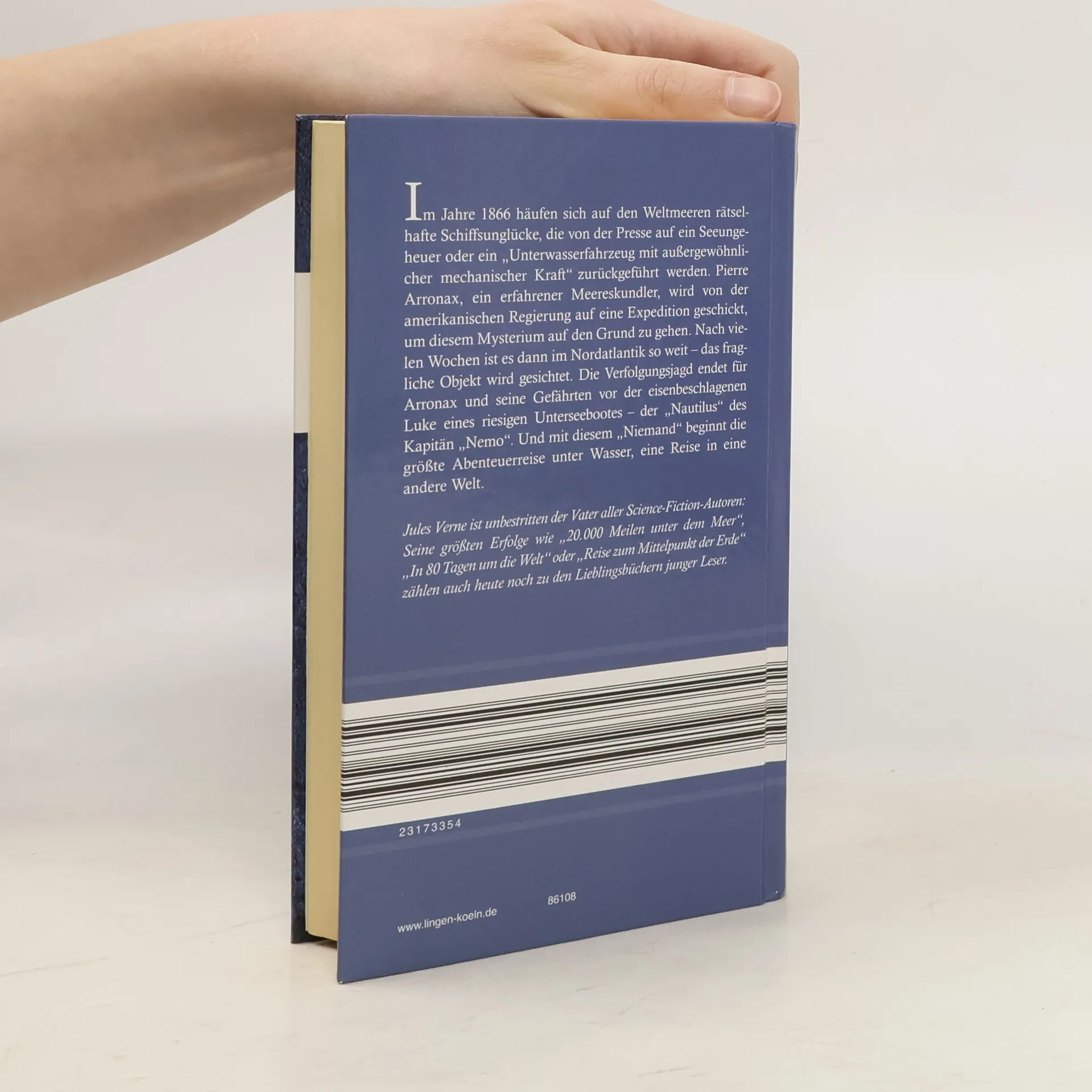 Zu den immer wieder zitierten Meisterwerken von Jules Verne gehört der große Roman über das Riesen-U-Boot Nautilus und die Geschichte von Kapitän Nemo, dem grausamen und geheimnisvollen Rächer, der darin mit einer kleinen Schar Getreuer die Weltmeere befährt. Jules Verne hatte gerade auf einem Kabelleger den Atlantik überquert, als er dieses Buch schrieb. Beispielhaft mischt er darin eine spannende Romanhandlung, wissenswerte Informationen über Ozeanographie, Meeresfauna und -flora mit phantastischen Abenteuern wie dem Kampf mit Riesenkraken, dem Unterqueren der Meerenge von Sues oder der Entdeckung des untergegangenen Atlantis. Hinzu kommt die geniale technische Vision hinsichtlich des Funktionierens eines Unterwasserschiffes, das zudem ungeheuer luxuriös ausgestattet ist. Und schließlich die Schicksalsgeschichte von Kapitän Nemo selbst, eines Menschen rätselhafter Herkunft, eines gebildeten und kultivierten Wissenschaftlers und Ingenieurs, der gleichwohl am Schluß den Untergang eines Kriegsschiffes, das die Nautilus absichtlich gerammt hatte, mit Genuß von seinem Salonfenster aus beobachtet.