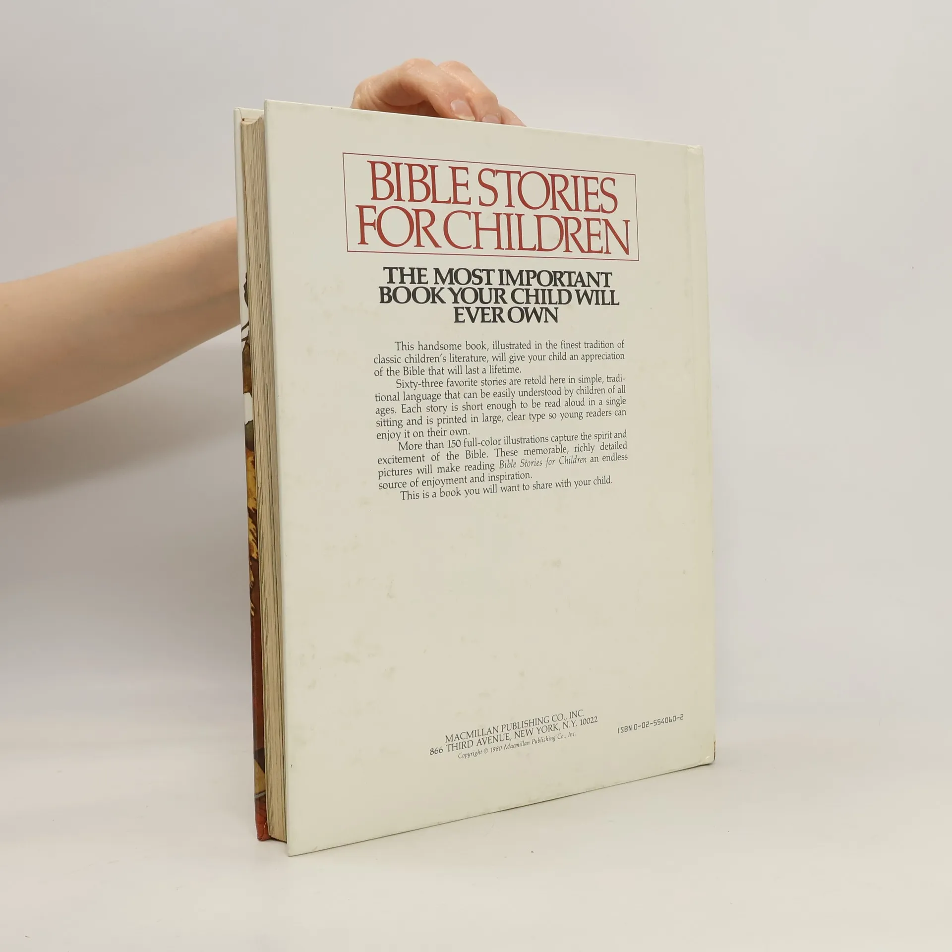 This handsome book, illustrated in the finest tradition of classic children's literature, will give your child an appreciation of the Bible that will last a lifetime. Sixty-three favorite stories are retold here in simple, traditional language that can be easily understood by children of all ages. Each story is short enough to be read aloud in a single sitting and is printed in large, clear type so young readers can enjoy it on their own. More than 150 full-color illustrations capture the spirit and excitement of the Bible. These memorable, richly detailed pictures will make reading Bible Stories for Children and endless source of enjoyment and inspiration. This is a book you will want to share with your child.