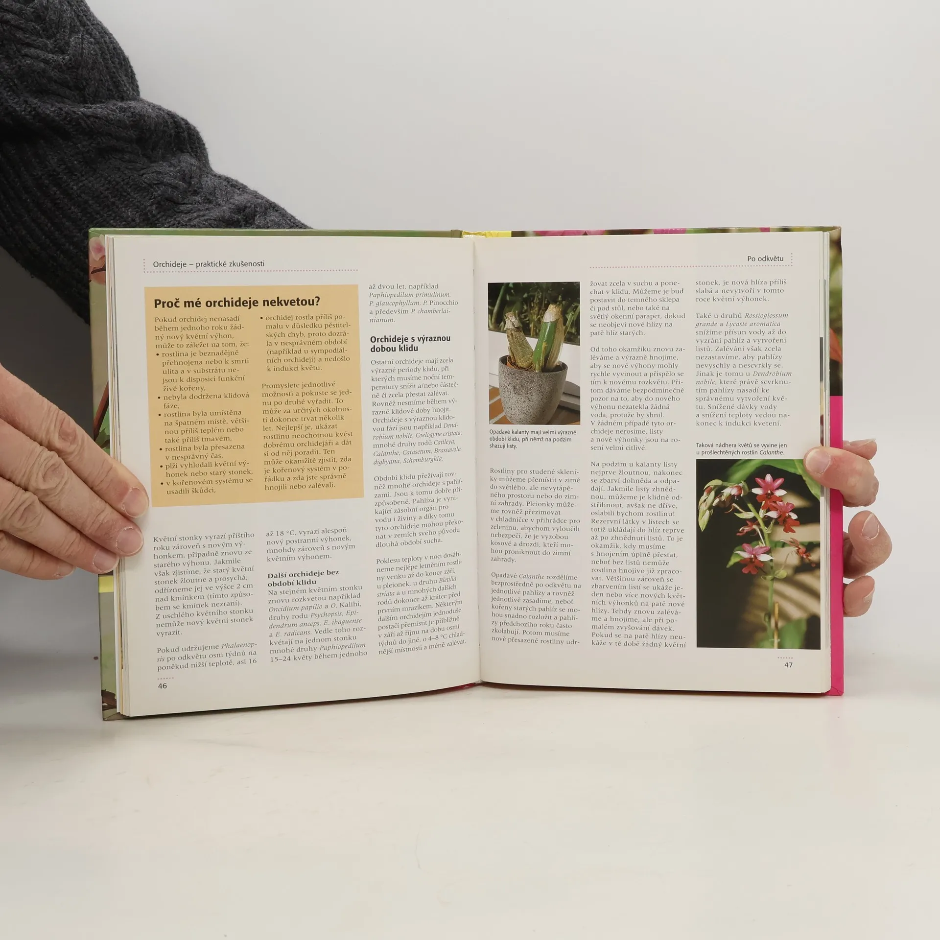 Vynikající příručka pro všechny milovníky orchidejí. Ukazuje, že tyto nádherné exotické rostliny nepotřebují speciálně osvětlené ani vytápěné skleníky, ale lze je pěstovat běžně v bytě, například na okenních parapetech. Kniha obsahuje nádherné barevné fotografie každého uvedeného druhu, rodu či hybridu, přehledné popisy a základní nároky na teplotu, světlo, substrát, přesazování, rosení, zalévání, hnojení i ošetřování po odkvětu i množení.