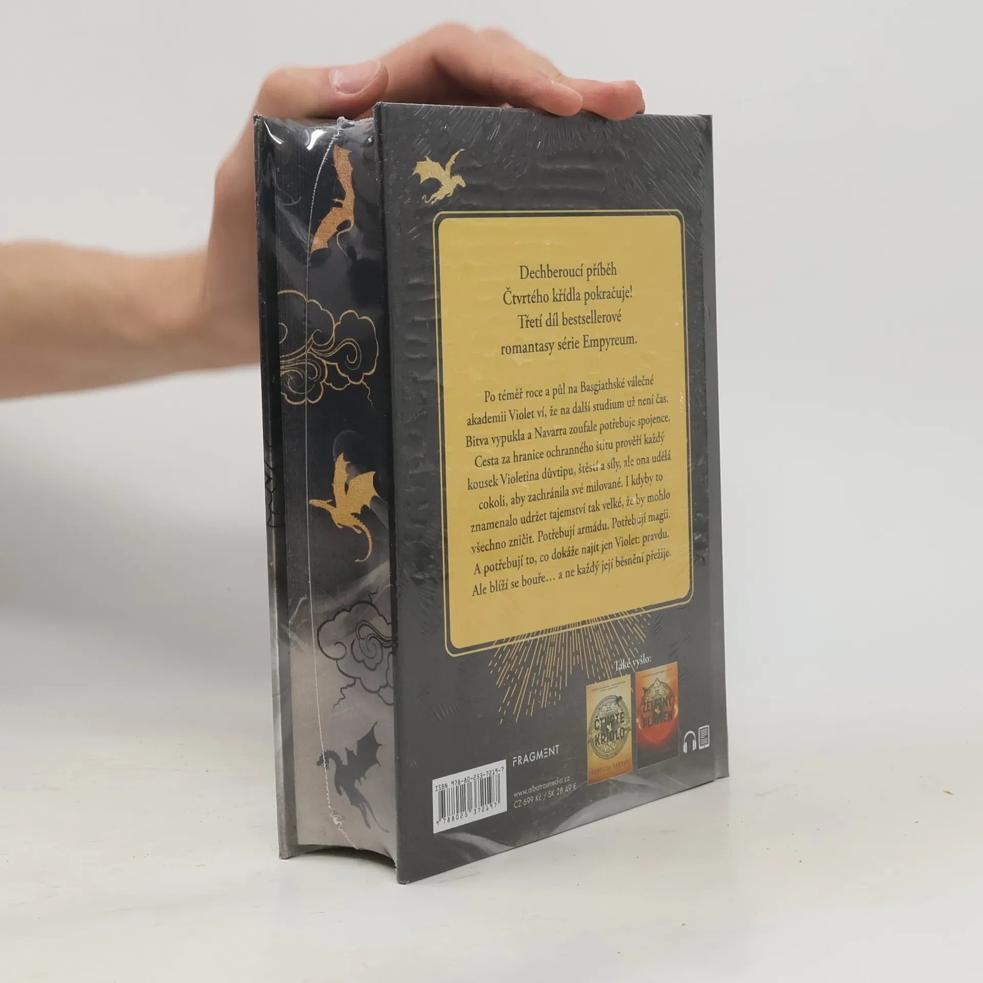 Dechberoucí příběh Čtvrtého křídla pokračuje! Třetí díl bestsellerové romantasy série Empyreum. Po téměř roce a půl na Basgiathské válečné akademii Violet ví, že na další studium už není čas. Bitva vypukla a Navarra zoufale potřebuje spojence. Cesta za hranice ochranného štítu prověří každý kousek Violetina důvtipu, štěstí a síly, ale ona udělá cokoli, aby zachránila své milované. I kdyby to znamenalo udržet tajemství tak velké, že by mohlo všechno zničit. Potřebují armádu. Potřebují magii. A potřebují to, co dokáže najít jen Violet: pravdu. Ale blíží se bouře… a ne každý její běsnění přežije.