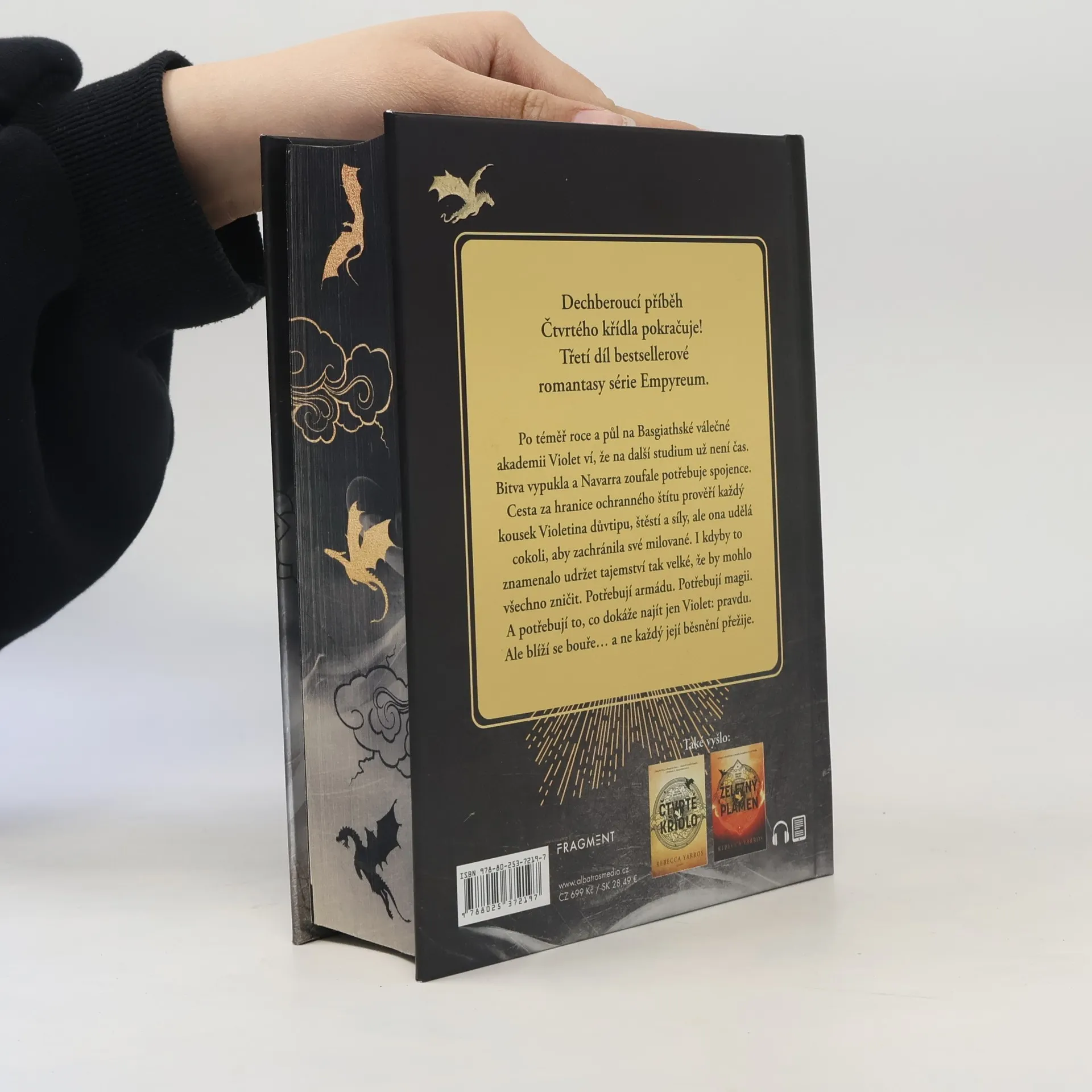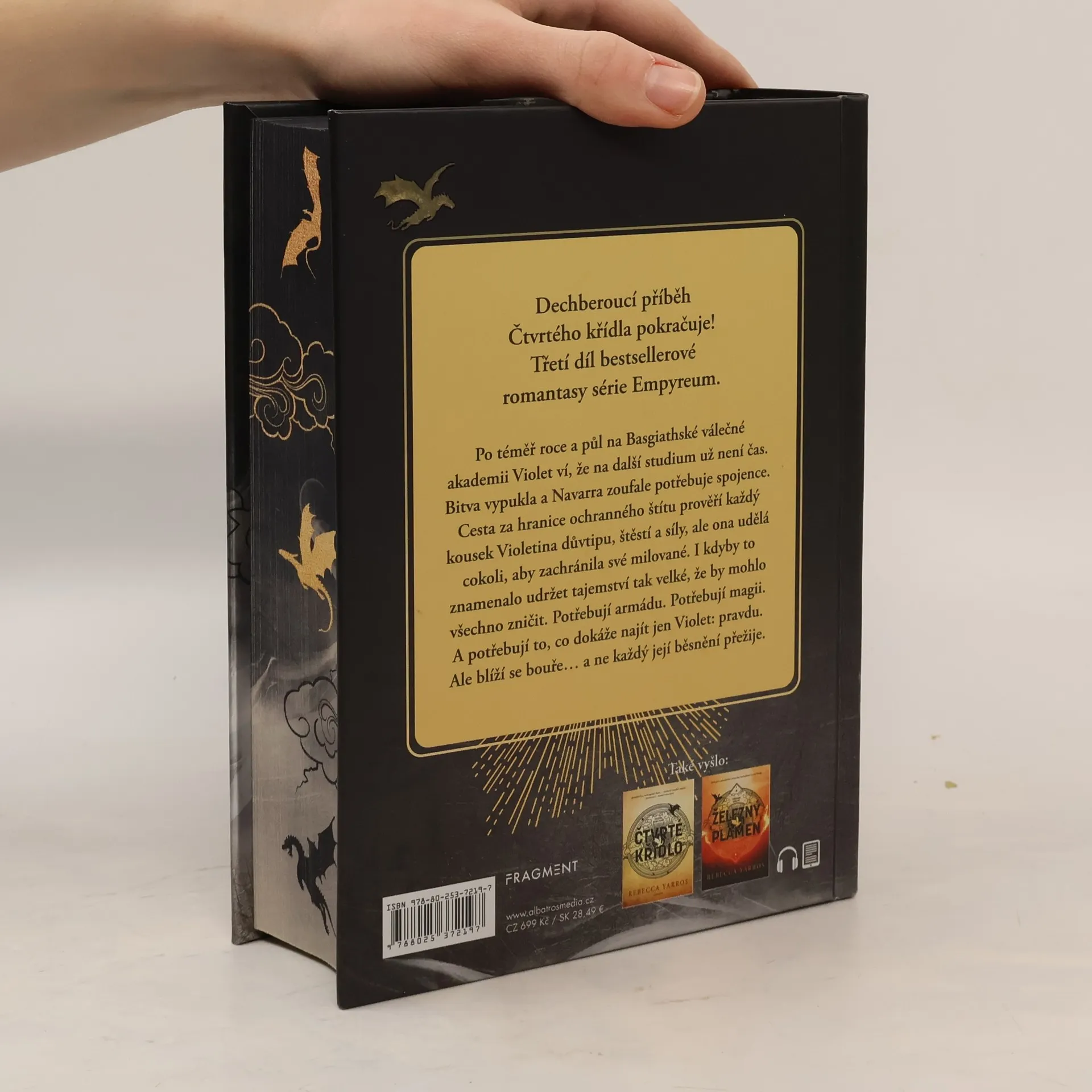 Dechberoucí příběh Čtvrtého křídla pokračuje! Třetí díl bestsellerové romantasy série Empyreum. Po téměř roce a půl na Basgiathské válečné akademii Violet ví, že na další studium už není čas. Bitva vypukla a Navarra zoufale potřebuje spojence. Cesta za hranice ochranného štítu prověří každý kousek Violetina důvtipu, štěstí a síly, ale ona udělá cokoli, aby zachránila své milované. I kdyby to znamenalo udržet tajemství tak velké, že by mohlo všechno zničit. Potřebují armádu. Potřebují magii. A potřebují to, co dokáže najít jen Violet: pravdu. Ale blíží se bouře… a ne každý její běsnění přežije.