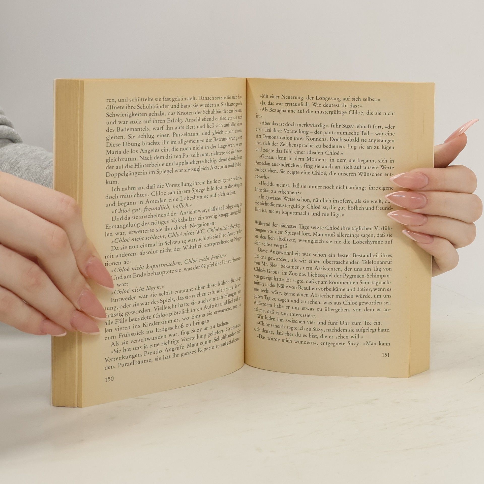 Tatsachenroman über das Experiment eines amerikanischen Anthropologen, einen jungen Schimpansen im eigenen Haushalt aufzuziehen und ihm die Taubstummensprache beizubringen.