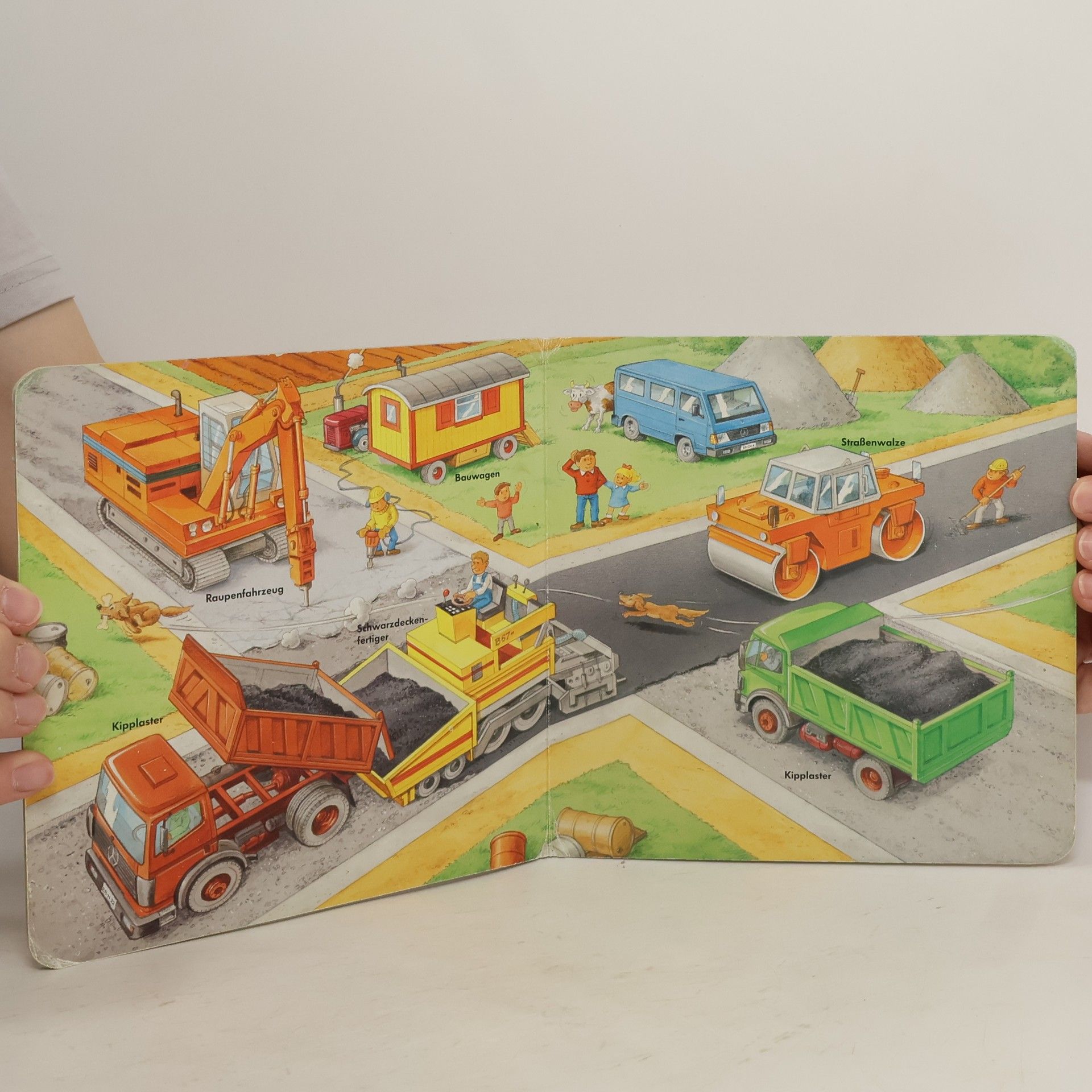 Baustellenfahrzeuge bei der Arbeit. - Pappbilderbuch.