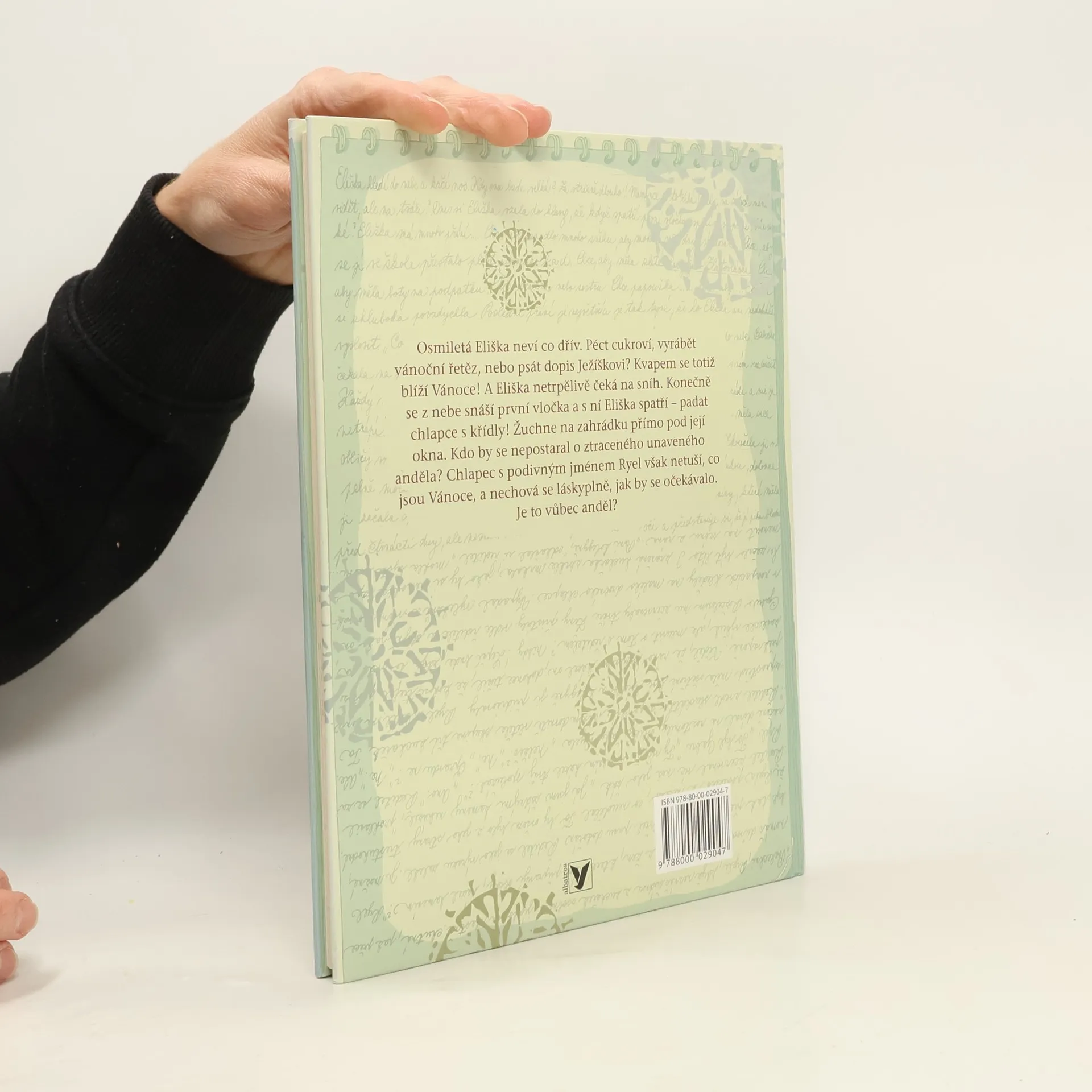 Osmiletá Eliška neví co dřív. Péct cukroví, vyrábět vánoční řetěz, nebo psát dopis Ježíškovi? Kvapem se totiž blíží Vánoce! A Eliška netrpělivě čeká na sníh. Konečně se z nebe snáší první vločka a s ní Eliška spatří – padat chlapce s křídly! Žuchne na zahrádku přímo pod její okna. Kdo by se nepostaral o ztraceného unaveného anděla? Chlapec s podivným jménem Ryel však netuší, co jsou Vánoce, a nechová se láskyplně, jak by se očekávalo. Je to vůbec anděl?