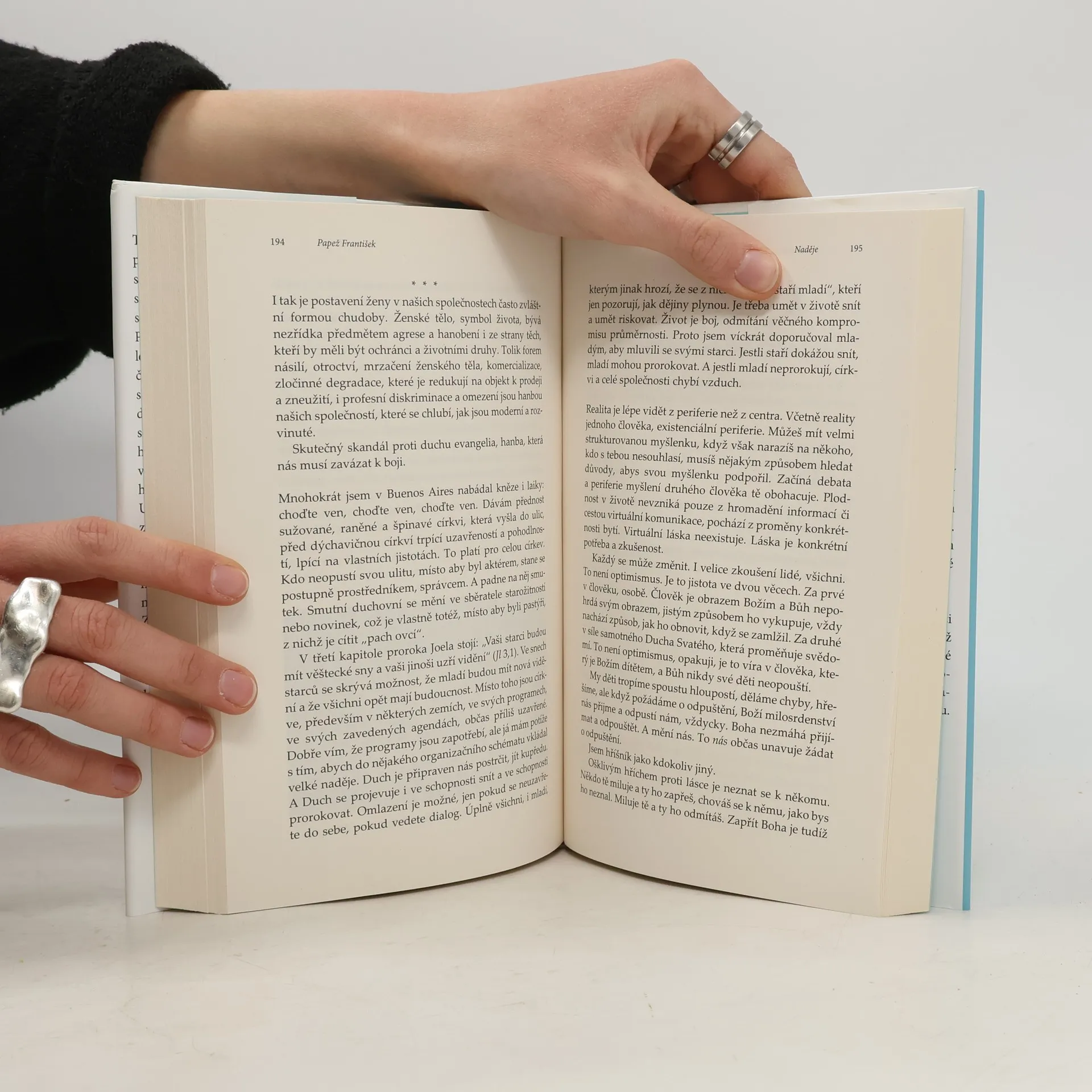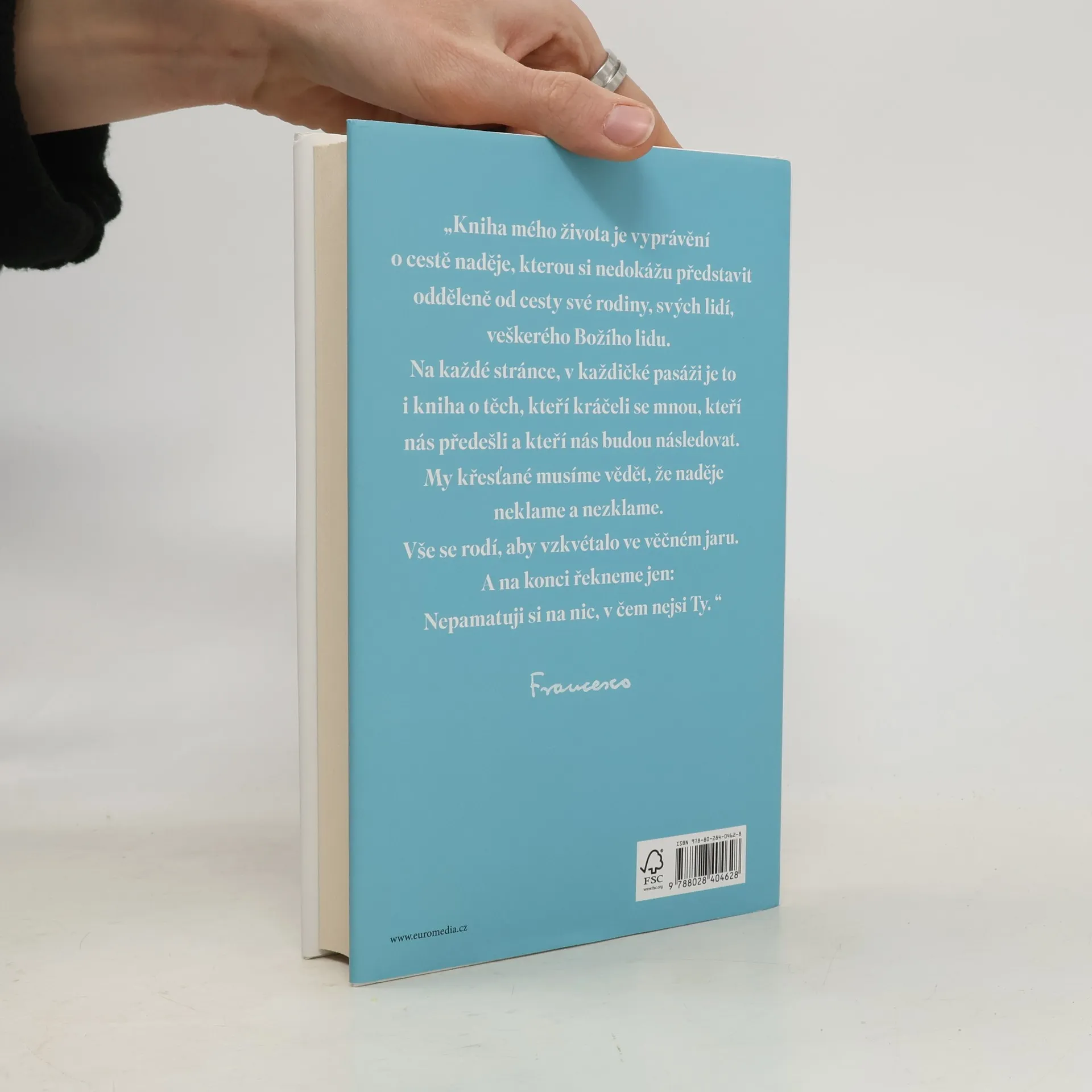 Jediná oficiální autobiografie papeže Františka. Papež František se ohlíží za svým pozoruhodným životem, přibližuje své dětství i dospívání a události, které ho přivedly k volbě životního poslání. S odvahou a upřímností se věnuje i zásadním tématům současnosti, jako je válkaa mír, migrace, environmentální krize, postavení žen, sexualita, technologický rozvoj či budoucnost církve. Knihu doplňují vzácné fotografie, včetně soukromých a nepublikovaných materiálů.