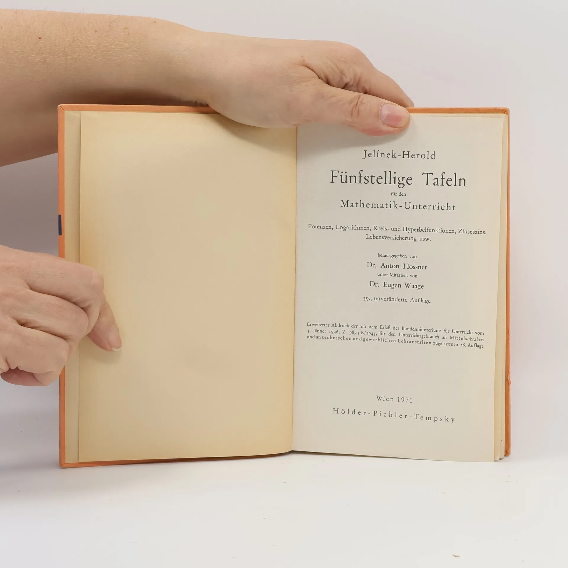 Fünfstellige Tafeln für den Mathematik-Unterricht, Anton Hossner, Eugen Waage