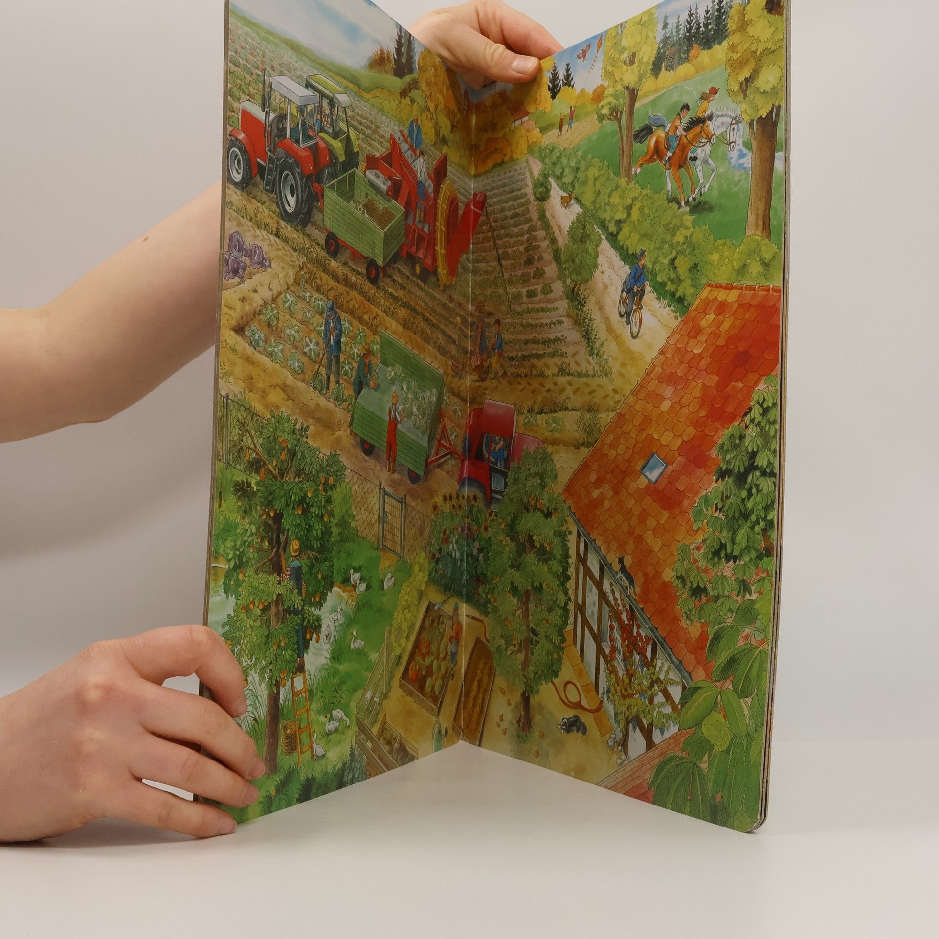 Maxi leporelo - Poutavé ilustrace této velké obrázkové knížky zvou děvčátka a chlapce v předškolním věku k soustředěnému pozorování a vyprávění. Celostránkové výjevy ze života na statku na stránkách přímo ožívají s postavami a vybízejí k dalšímu rozvíjení zobrazených situací. Popusťte uzdu fantazii a vyprávějte, co se na obrázcích děje!