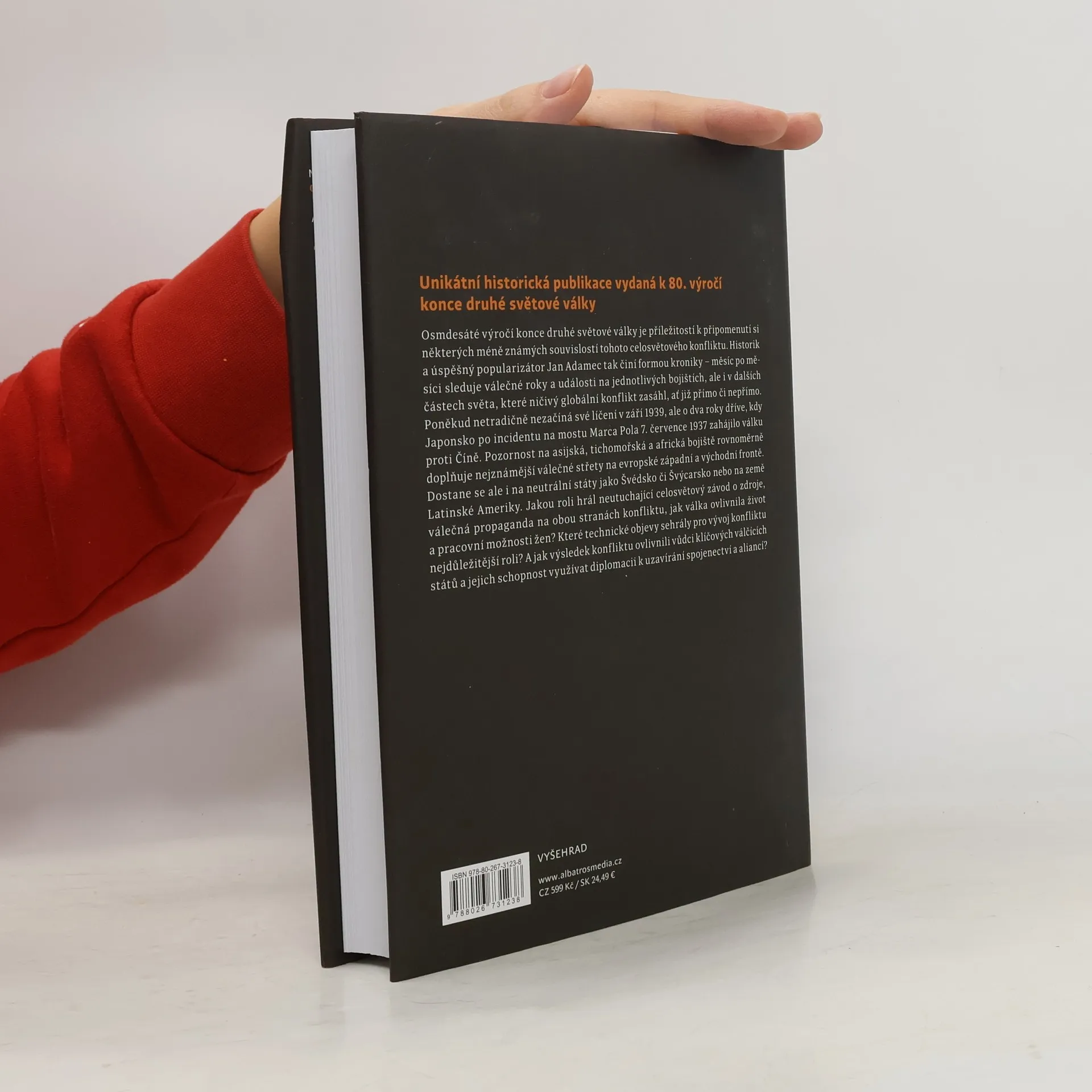 Výročí osmdesáti let od konce druhé světové války je příležitostí k připomenutí si některých méně známých souvislostí tohoto celosvětového konfliktu. Historik a úspěšný popularizátor Jan Adamec tak činí formou kroniky – měsíc po měsíci sleduje válečné roky a události na jednotlivých bojištích, ale i v dalších částech světa, které ničivý globální konflikt zasáhl. Poněkud netradičně nezačíná své líčení v září 1939, ale o dva roky dříve, kdy Japonsko po incidentu na mostu Marca Pola 7. července 1937 zahájilo válku proti Číně. Pozornost na asijská, tichomořská a africká bojiště rovnoměrně doplňuje nejznámější válečné střety na evropské západní a východní frontě. Kromě samotných válečných akcí se bohatě dostává i na diplomacii, která ani v době válečného konfliktu samozřejmě neustala. Poutavá kniha dává nahlédnout do mnoha méně známých souvislostí druhé světové války.