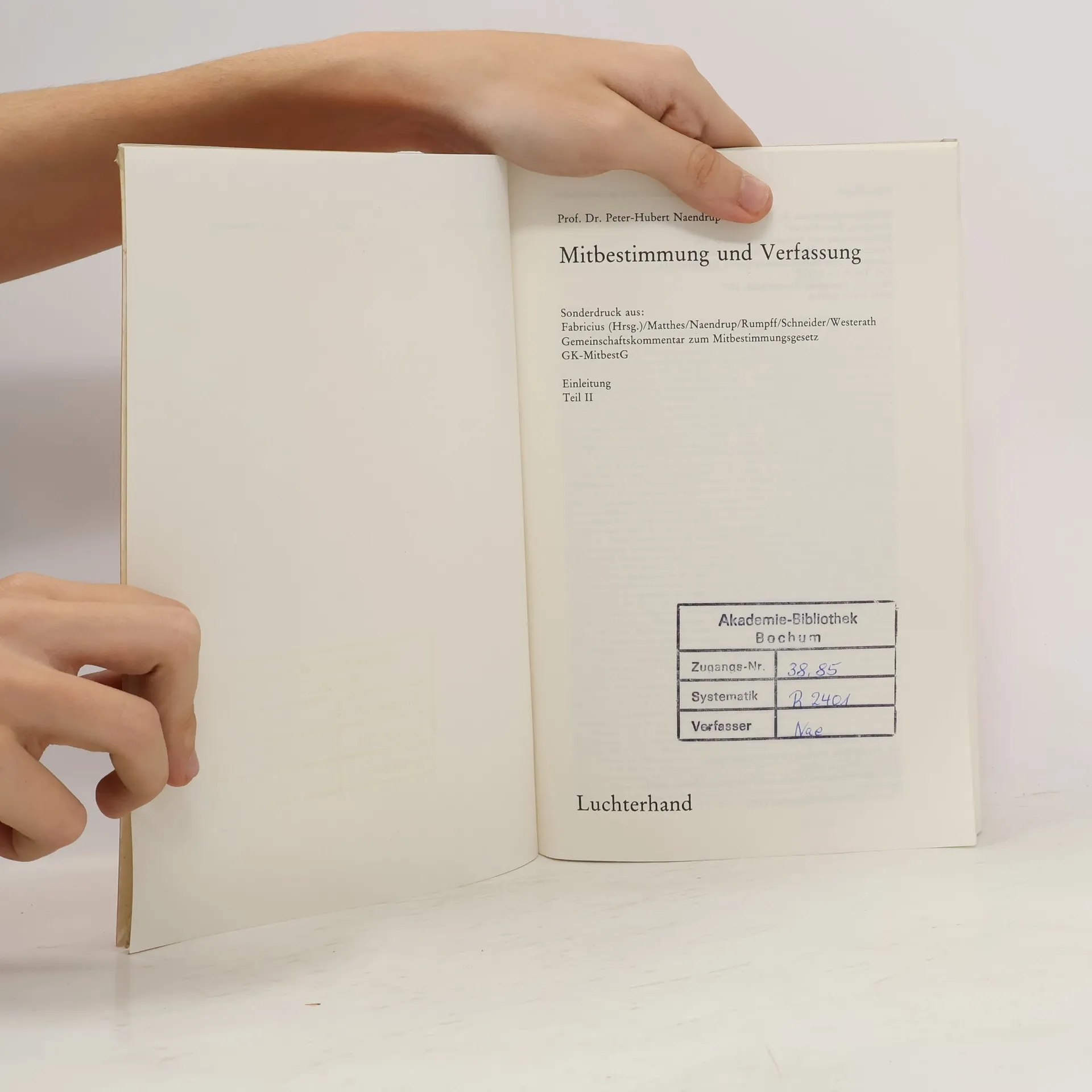 Mitbestimmung und Verfassung, Peter Hubert Naendrup