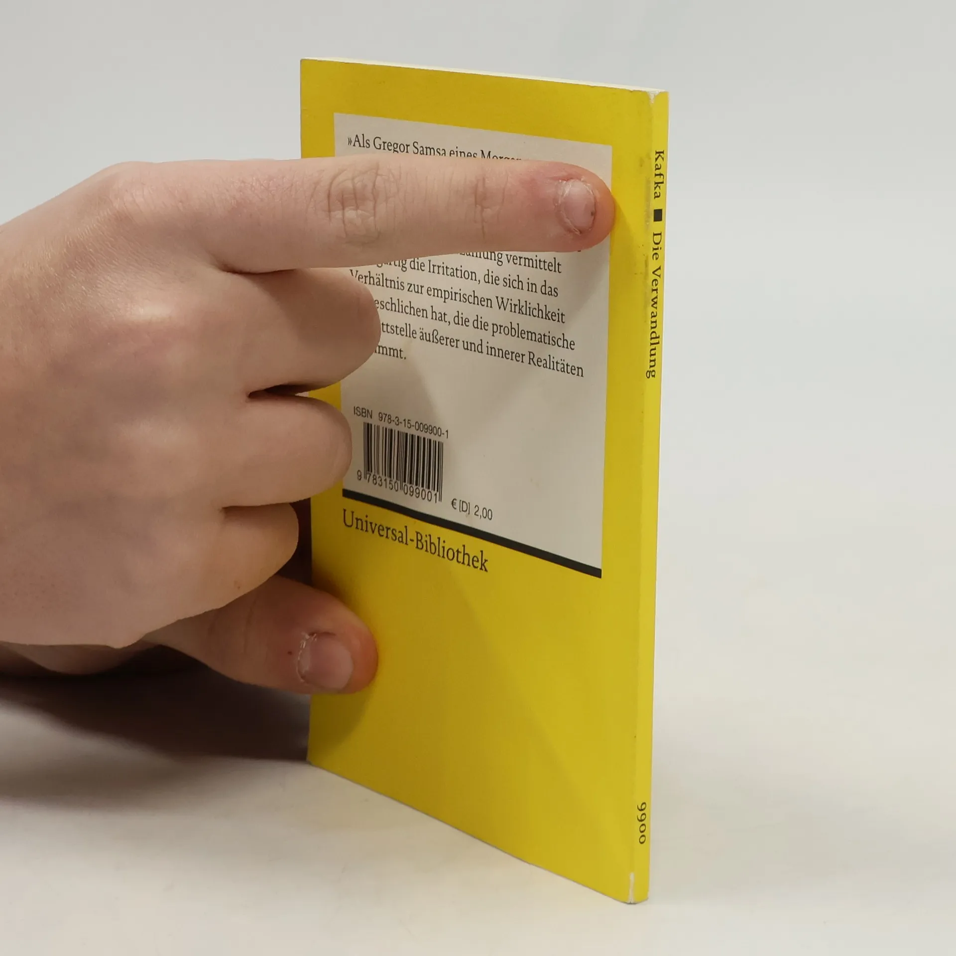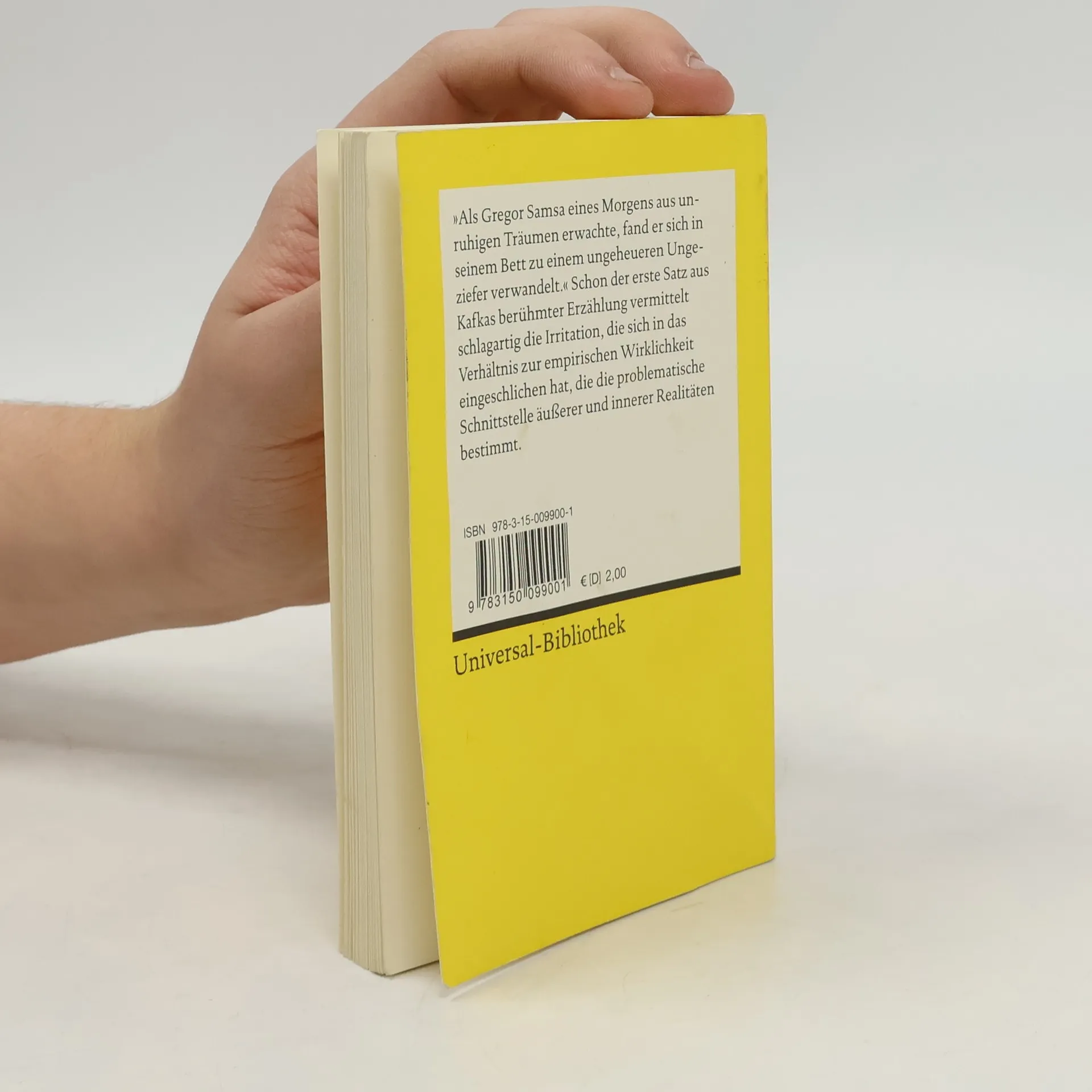 „Als Gregor Samsa eines Morgens aus unruhigen Träumen erwachte, fand er sich in seinem Bett zu einem ungeheueren Ungeziefer verwandelt.“ Schon der erste Satz aus Kafkas berühmter Erzählung vermittelt schlagartig die Irritation, die sich in das Verhältnis zur empirischen Wirklichkeit eingeschlichen hat, die die problematische Schnittstelle äußerer und innerer Realitäten bestimmt. Text in neuer Rechtschreibung