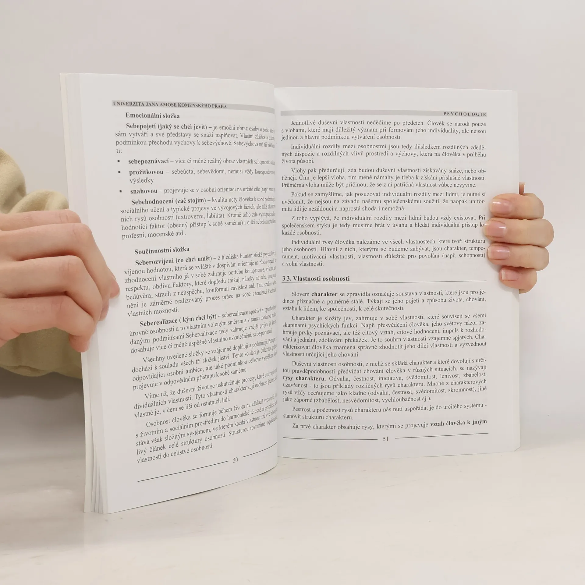 Úvod do studia: psychické procesy, psychologie poznání, psychologie osobnosti, vývojová psychologie, psychologie práce a duševní hygiena.