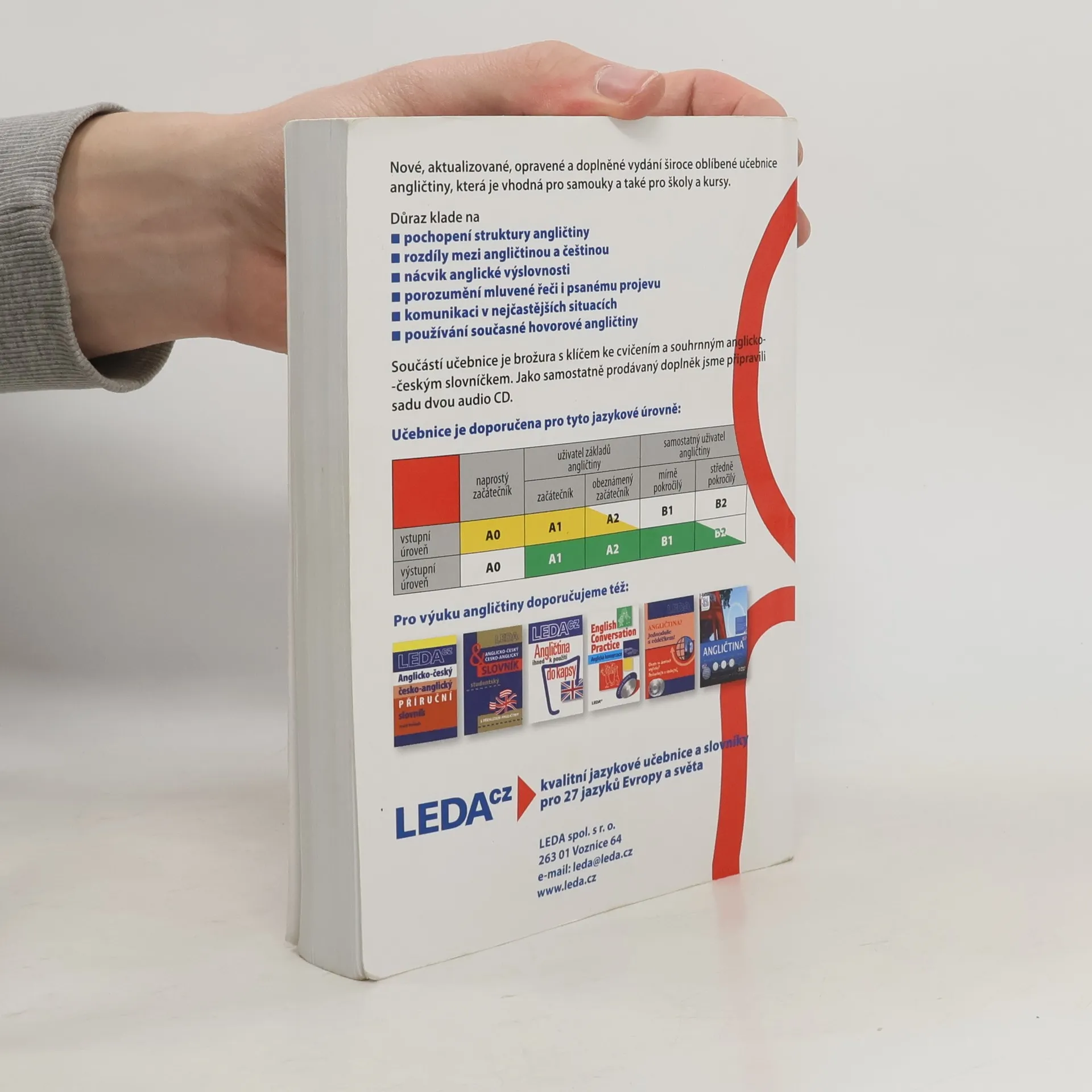 Zcela nové, aktualizované, opravené a doplněné vydání oblíbené učebnice angličtiny, která je vhodná nejen pro samouky, ale také pro školy a kursy. Přístupnou formou vede naprosté začátečníky a falešné začátečníky k osvojení základních znalostí anglické mluvnice, slovní zásoby v rozsahu asi 1800 slov, frazeologie a výslovnosti. Učebnice se soustřeďuje především na dvě základní jazykové dovednosti: poslech s porozuměním, kdy se uživatel naučí poslouchat angličtinu v přirozeném tempu a porozumět anglickému sdělení, a nácvik plynulého a správného vyjadřování v angličtině v každodenních situacích. Součástí učebnice je klíč pro téměř všechna cvičení a abecední anglicko-český slovníček. Samostatným doplňkem učebnice jsou dvě CD s nahrávkami úvodních textů a řadou výslovnostních a poslechových cvičení.