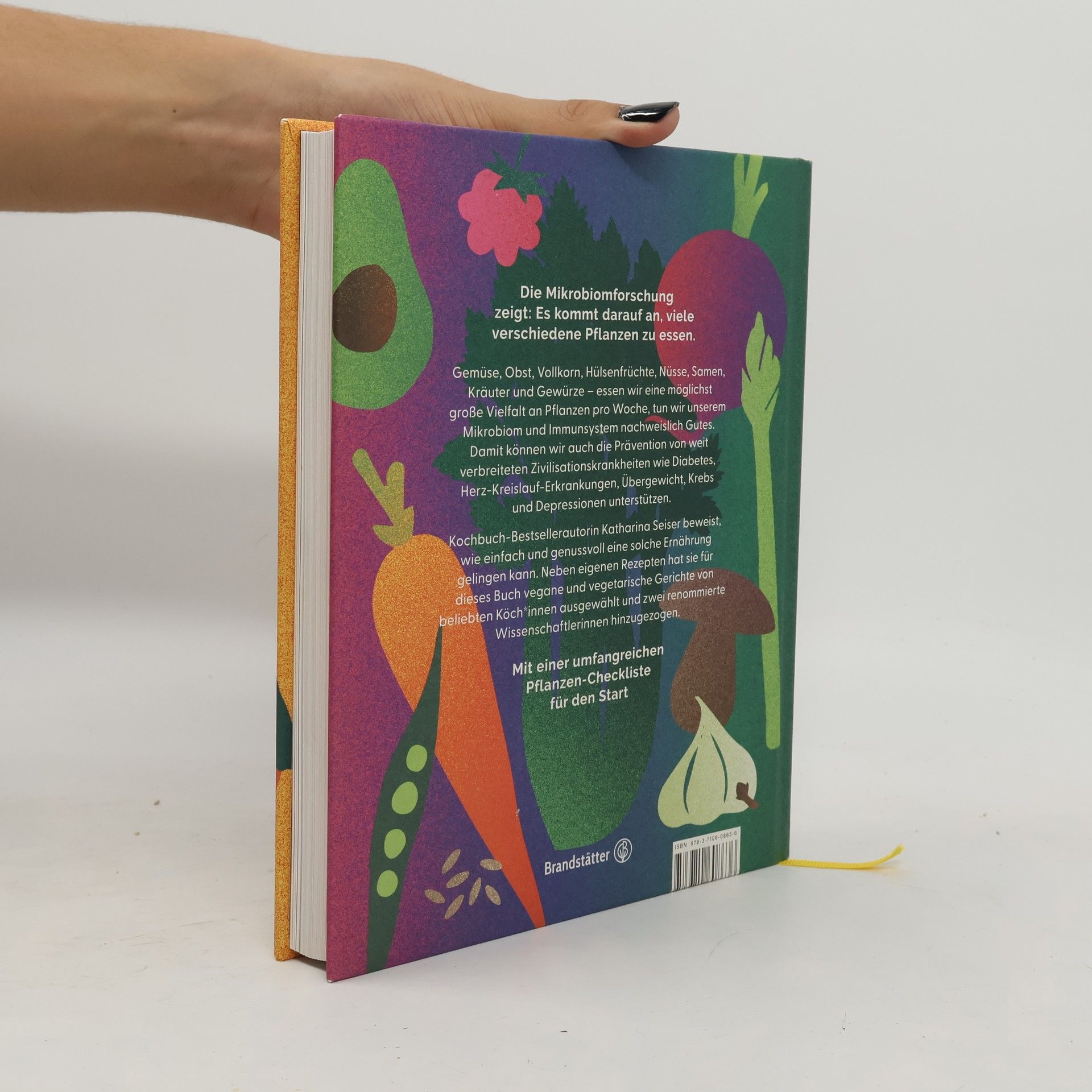 Die Mikrobiomforschung zeigt: Es kommt darauf an, viele verschiedene Pflanzen zu essen. Gemüse, Obst, Vollkorn, Hülsenfrüchte, Nüsse, Samen, Kräuter und Gewürze – essen wir eine möglichst große Vielfalt an Pflanzen pro Woche, tun wir unserem Mikrobiom und Immunsystem nachweislich Gutes. Damit können wir auch die Prävention von weit verbreiteten Zivilisationskrankheiten wie Diabetes, Herz-Kreislauf-Erkrankungen, Übergewicht, Krebs und Depressionen unterstützen. Kochbuch-Bestsellerautorin Katharina Seiser beweist, wie einfach und genussvoll eine solche Ernährung gelingen kann. Neben eigenen Rezepten hat sie für dieses Buch vegane und vegetarische Gerichte von beliebten Köch*innen ausgewählt und zwei renommierte Wissenschaftlerinnen hinzugezogen. Mit einer umfangreichen Pflanzen-Checkliste für den Start. Mit Rezepten von Haya Molcho, Stevan Paul, Claudio Del Principe, Katharina Seiser, Oliver Trific, Feminine Food, Karma Food, KochDichTürkisch und Mochi.