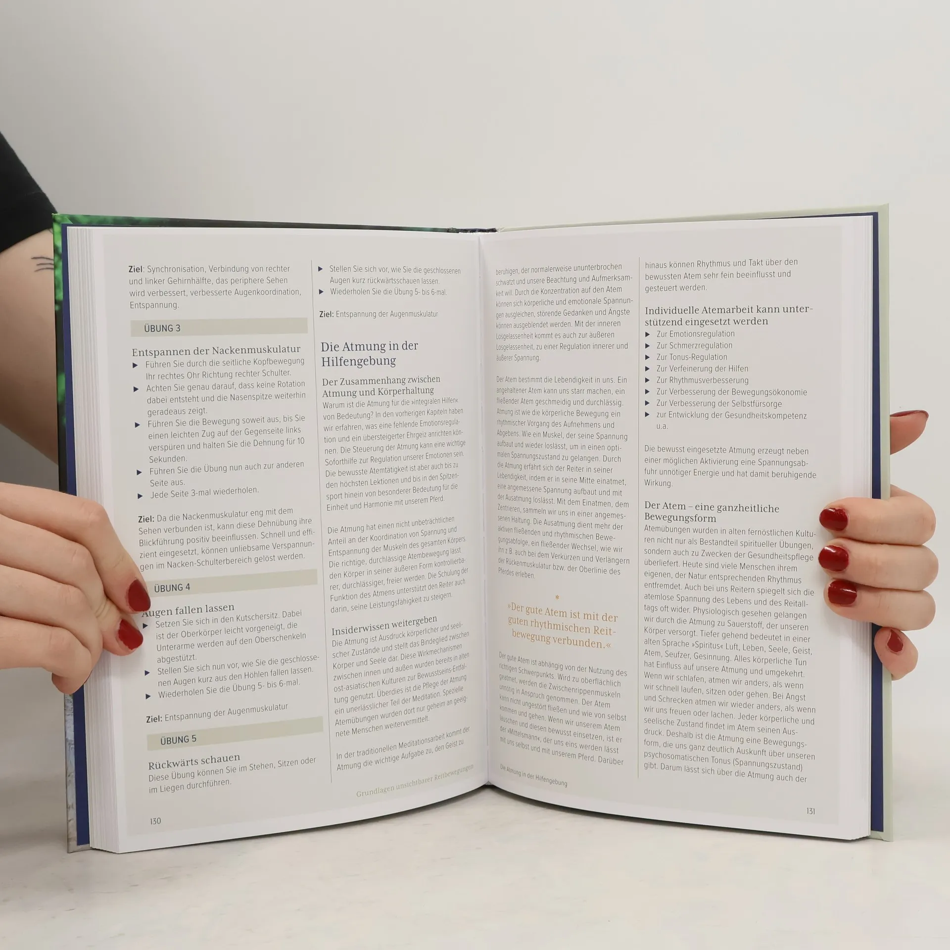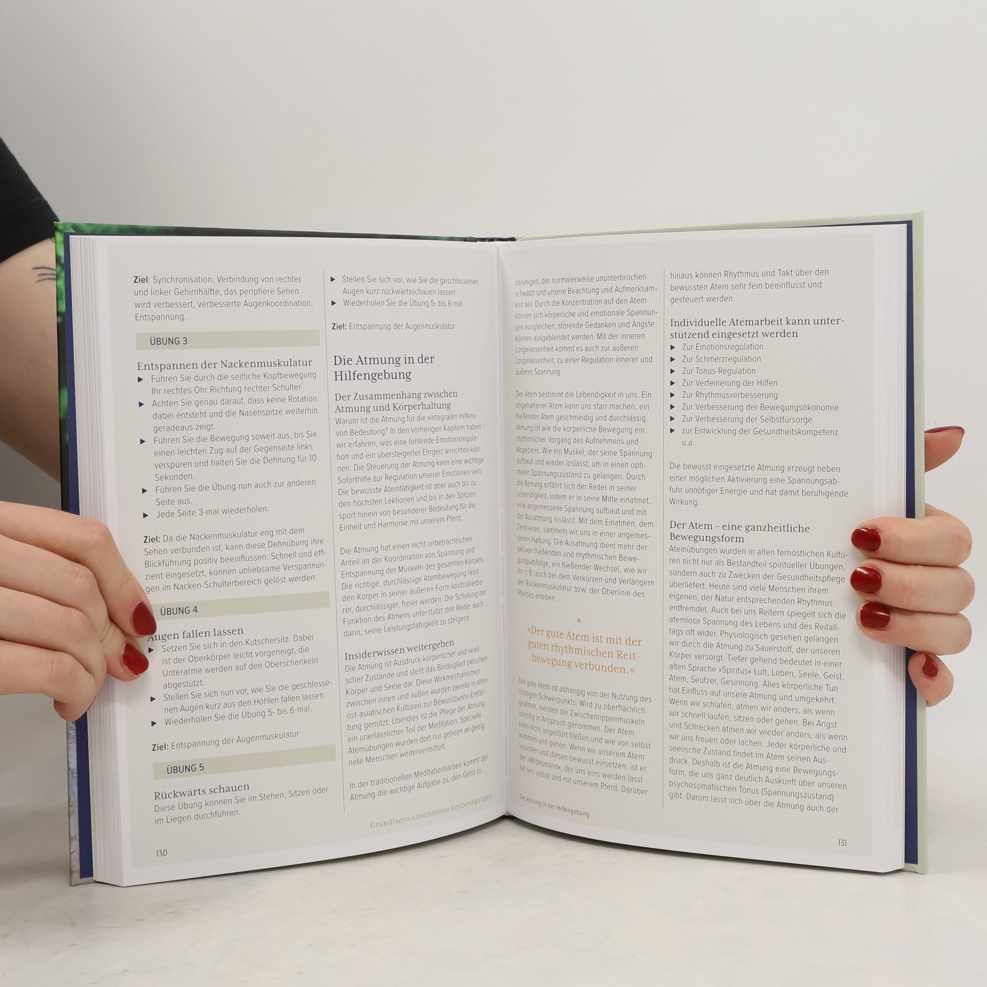 Hier erfahren Reiter und Ausbilder aller Leistungsstufen und Reitweisen wie der Traum vom pferdegerechten Reiten und Ausbilden mit unsichtbaren Hilfen Wirklichkeit werden kann. Das Buch bietet dem Leser zusätzlich zu einer Mensch und Pferd verbindenden, physiologischen Reit- und Bewegungslehre (I.B.K.) innovative Anregungen die eigene Selbstwirksamkeit und Kompetenzen durch ein »Lernen & Lehren als Forschungsreise« zu verbessern. Es enthüllt viele Geheimnisse, wie Sitz und Einwirkung neu gedacht und erfahren werden können, um Harmonie und Leichtigkeit mit gesunder Leistung im Freizeit- und Turniersport zu verbinden.