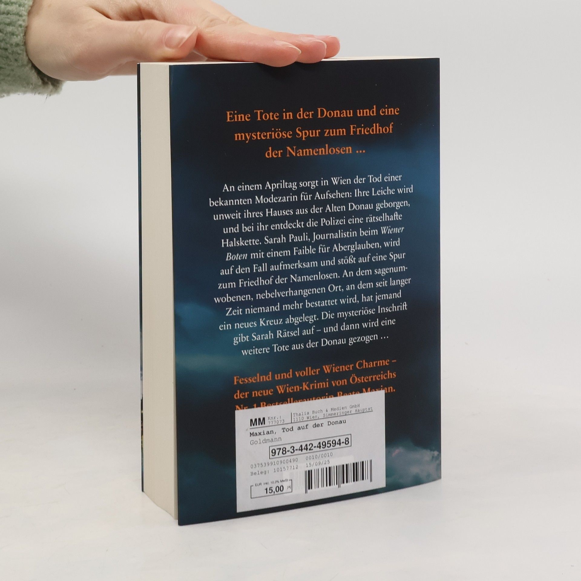 An einem Apriltag sorgt in Wien der Tod einer bekannten Modezarin für Aufsehen: Ihre Leiche wird unweit ihres Hauses aus der Alten Donau geborgen, und bei ihr entdeckt die Polizei eine rätselhafte Halskette. Sarah Pauli, Journalistin beim Wiener Boten mit einem Faible für Aberglauben, wird auf den Fall aufmerksam und stößt auf eine Spur zum Friedhof der Namenlosen. An dem sagenumwobenen, nebelverhangenen Ort, an dem seit langer Zeit niemand mehr bestattet wird, hat jemand ein neues Kreuz abgelegt. Die mysteriöse Inschrift gibt Sarah Rätsel auf – und dann wird eine weitere Tote aus der Donau gezogen …