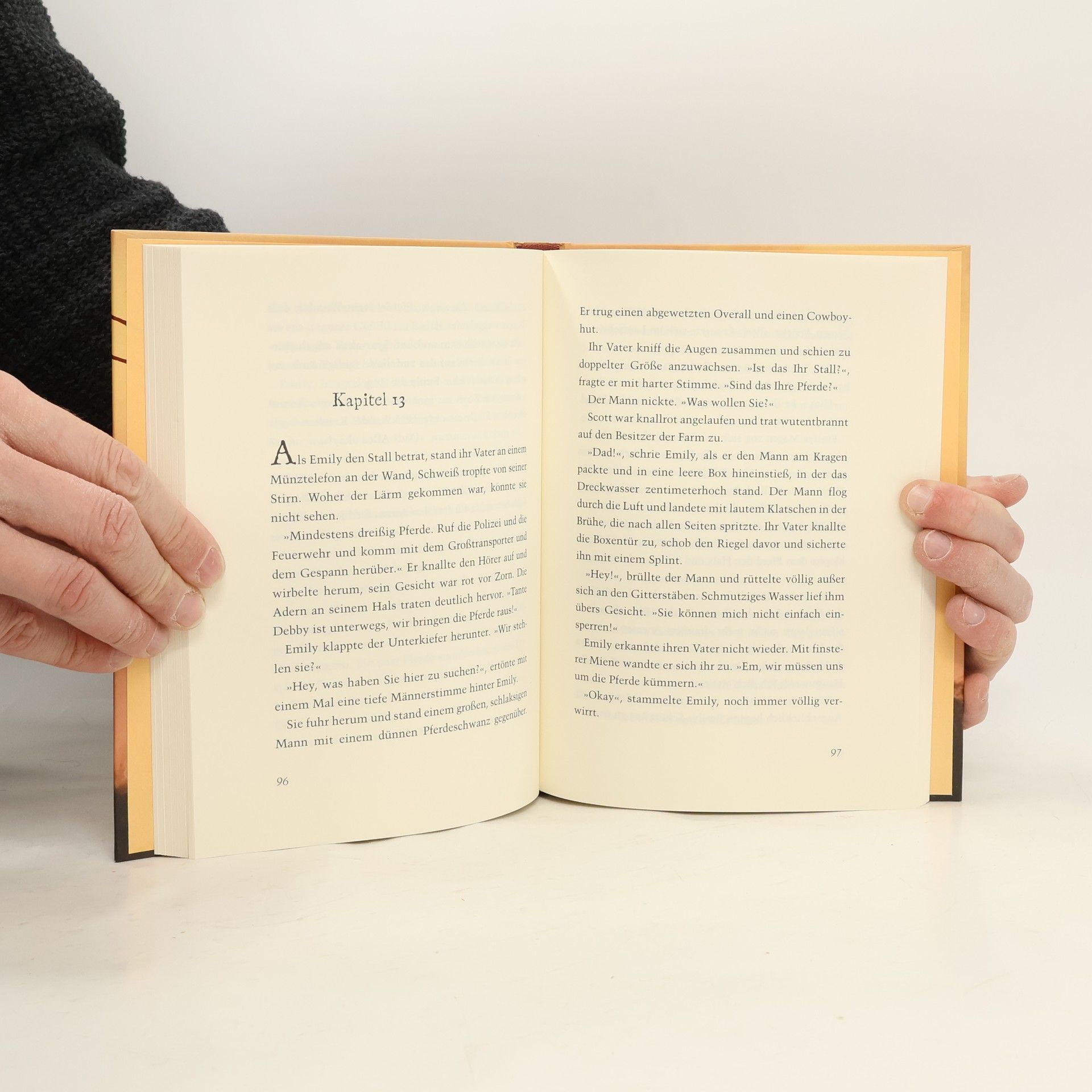 Beim vorliegenden Titel handelt es sich um den 1. Band der neuen, aus dem Amerikanischen in Deutsche übersetzten Reihe "Wilde Horse Ranch" für weibliche Pferdefans ab 10 Jahren. Zentrale Protagonistin ist Emily, deren wichtigstes Hobby das Dressurreiten ist, das sie in einer Reit-Beteiligung umsetzt. Doch als sie dann erstmalig zusammen mit ihrem Vater dessen Heimat besucht, die "Wild Horse Ranch", wendet sich ihr Blick. Die Pferdefarm ihrer Tante ist eine grosse Herausforderung für das Mädchen, das sich dort von vielen sicher geglaubten Regeln ihres bisherigen Lebens verabschiedet und so auch ein Stück erwachsener wird. Denn die Ranch ihrer Tante ist eine Sammelstelle für gequälte und kranke Pferde, die dort gesund gepflegt werden. Schon bald realisiert Emily, dass es Spass machen kann, Verantwortung für den gesamten Pflegeprozess zu übernehmen, anstatt sich nur, wie in ihrer bisherigen Reit-Praxis, das Pferd für eine "saubere" Dressurnummer aus der Box zu holen ... Auf Fortsetzungen darf man gespannt sein! Ein spannender und unterhaltsamer Titel mit Tiefgang. Überall möglich. Ab 10
