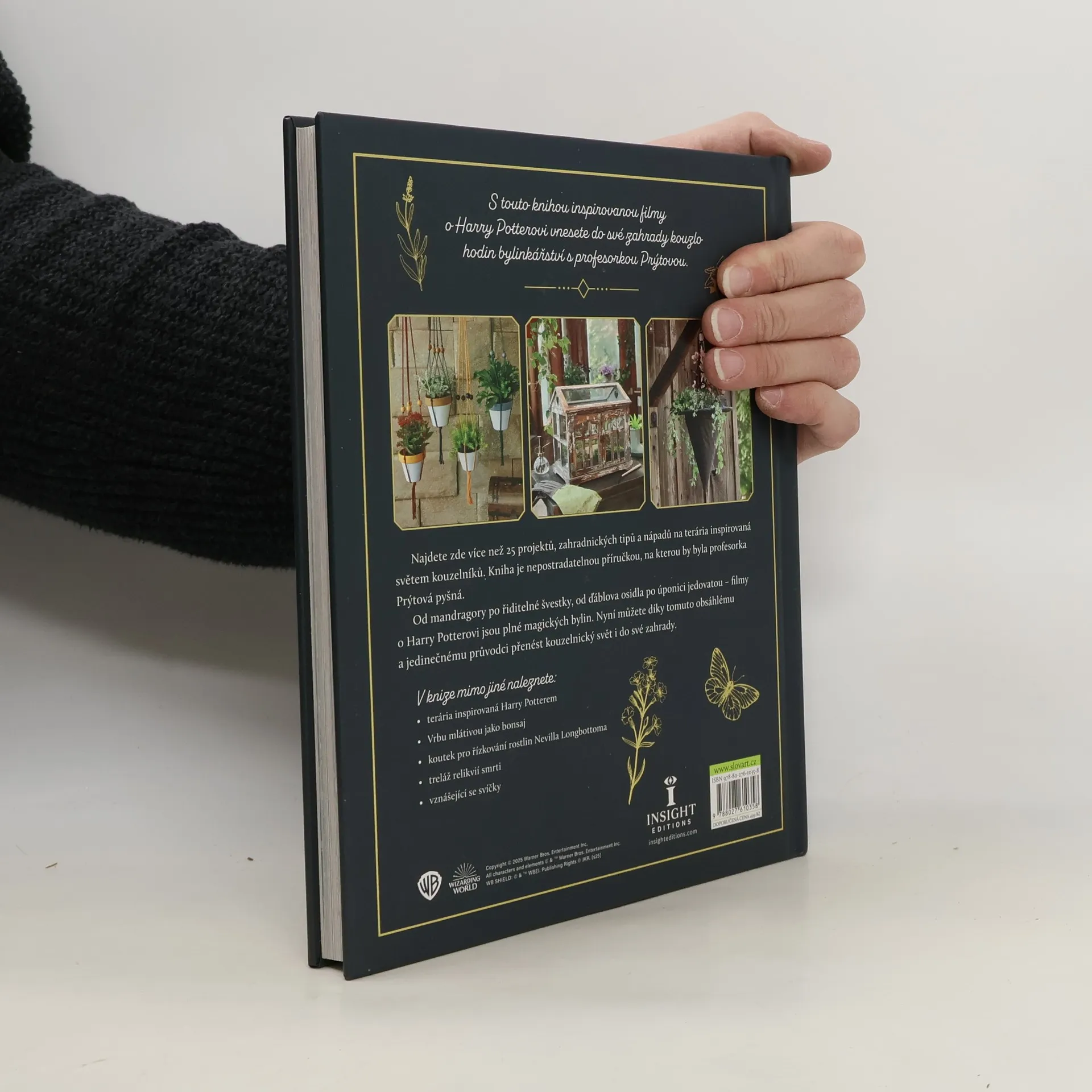S touto knihou inspirovanou filmy o Harrym Potterovi vnesete do své zahrady kouzlo hodin bylinkářství pod vedením profesorky Prýtové. Najdete zde více než 25 projektů, zahradnických tipů a nápadů na terária inspirovaných světem kouzelníků - od mandragory po řiditelné švestky, od ďáblova osidla po úponici jedovatou. Tento obsáhlý a jedinečný průvodce vám umožní přenést kouzelnický svět do vašich domovů. Kniha je nepostradatelnou příručkou pro všechny milovníky Harryho Pottera a magických bylin.