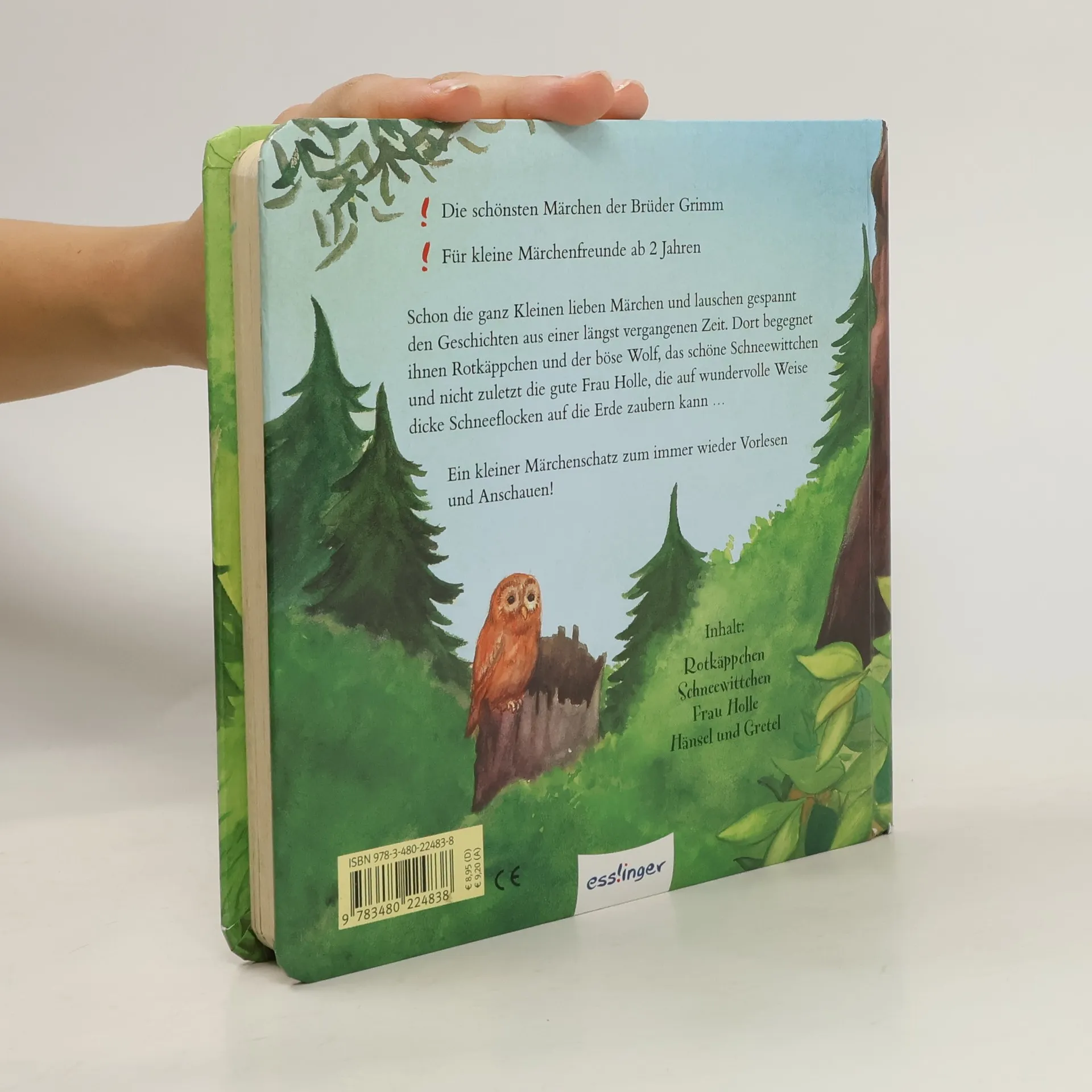 Ein Märchenschatz: Geschichten aus vergangenen Zeiten vorgelesen zu bekommen, lieben Kinder ganz besonders. Diese kleine Sammlung beinhaltet vier der wohl bekanntesten Märchen der Gebrüder Grimm. Zuerst begegnen wir dem Rotkäppchen, das mit dem Wolf schlimme Überraschungen erlebt und schliesslich mitsamt der Grossmutter doch noch gerettet wird. Im folgenden Märchen lernen wir Schneewittchen kennen, das der eifersüchtigen Stiefmutter zum Opfer fällt, aber dank den sieben Zwergen und dem hübschen Prinzen wieder zum Leben erweckt wird. Auch bei der Geschichte von Frau Holle, die auf ihre wundersame Art die Welt beschneien kann, siegt das Gute über das Böse, und Hänsel und Gretel beweisen in der letzten Erzählung viel Mut, sich gegen die schlechte Absicht der Stiefmutter durchzusetzen. Die Erzählungen in diesem einfach getexteten und farbenfroh bebilderten Pappbilderbuch mit wattiertem Umschlag ermöglichen Kleinkindern einen leichten Zugang in die phantastische Märchenwelt. Wie üblich gewinnt auch bei diesen Geschichten - trotz viel bösem Argwohn - wer Mut zeigt, kämpft und sich für das Gute einsetzt. Ab 2 Jahren, ****, Silvia Zanetti.