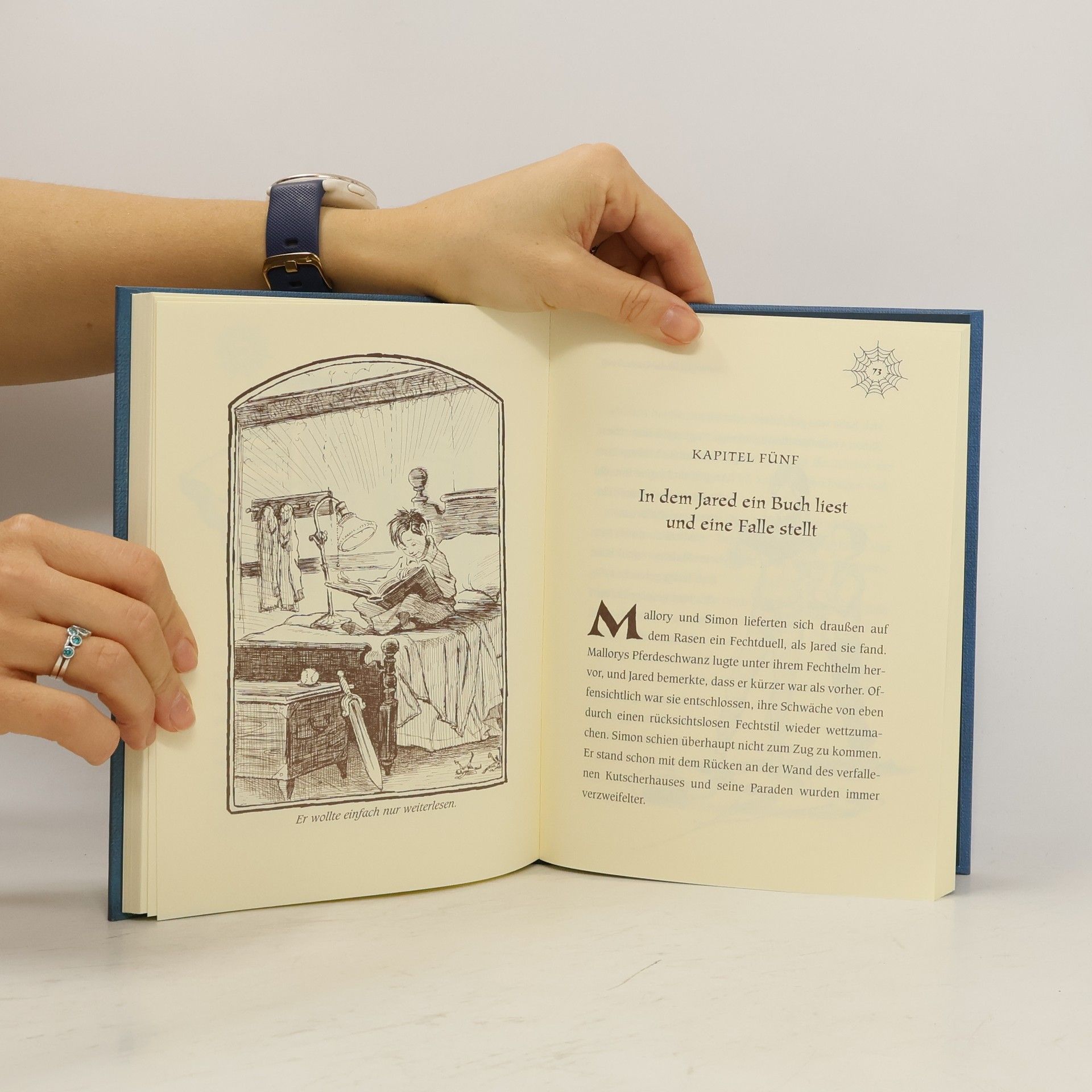 Ein altes, verfallenes Haus einer ungeliebten Tante –- das ist das neue Zuhause der Zwillinge Jared und Simon, ihrer Schwester Mallory und ihrer Mutter. Jared ist überhaupt nicht scharf darauf, dort zu wohnen. Aber Jareds Eltern sind geschieden, und sie können nirgendwo anders unterkommen. Doch das Haus von Tante Lucinda birgt viele Geheimnisse, wie die Kinder schnell feststellen: Da gibt es merkwürdige Geräusche in den Wänden, ein Nest mit einer Kakerlaken-Girlande –- und einen Aufzug, der in ein verborgenes Zimmer führt. In diesem Zimmer findet Jared Hinweise auf eine andere Welt, in der sich Elfen, Kobolde und Gnome tummeln. Und bald schon bekommen die Kinder die Anwesenheit dieser Wesen hautnah zu spüren: Mallorys Haare werden an ihr Bett geknotet, und Jared trifft einen leibhaftigen Irrwicht. Außerdem findet er “Arthur Spiderwicks Handbuch für die fantastische Welt um dich herum”, und damit geht das Abenteuer erst so richtig los. In diesem ersten Teil der Geschichte um Jared, seine Geschwister und die fantastische Welt der Elfen und Kobolde werden die Grundlagen gelegt für die Abenteuer, die die drei Kinder in den Folgebänden erleben werden. In vielerlei Hinsicht wird hier eine klassische Fantasygeschichte erzählt, doch manches daran ist ungewöhnlich: Die Kinder leben keineswegs in einer heilen Märchenwelt, sondern leiden unter der Scheidung ihrer Eltern und haben ihre Fehler und Macken.