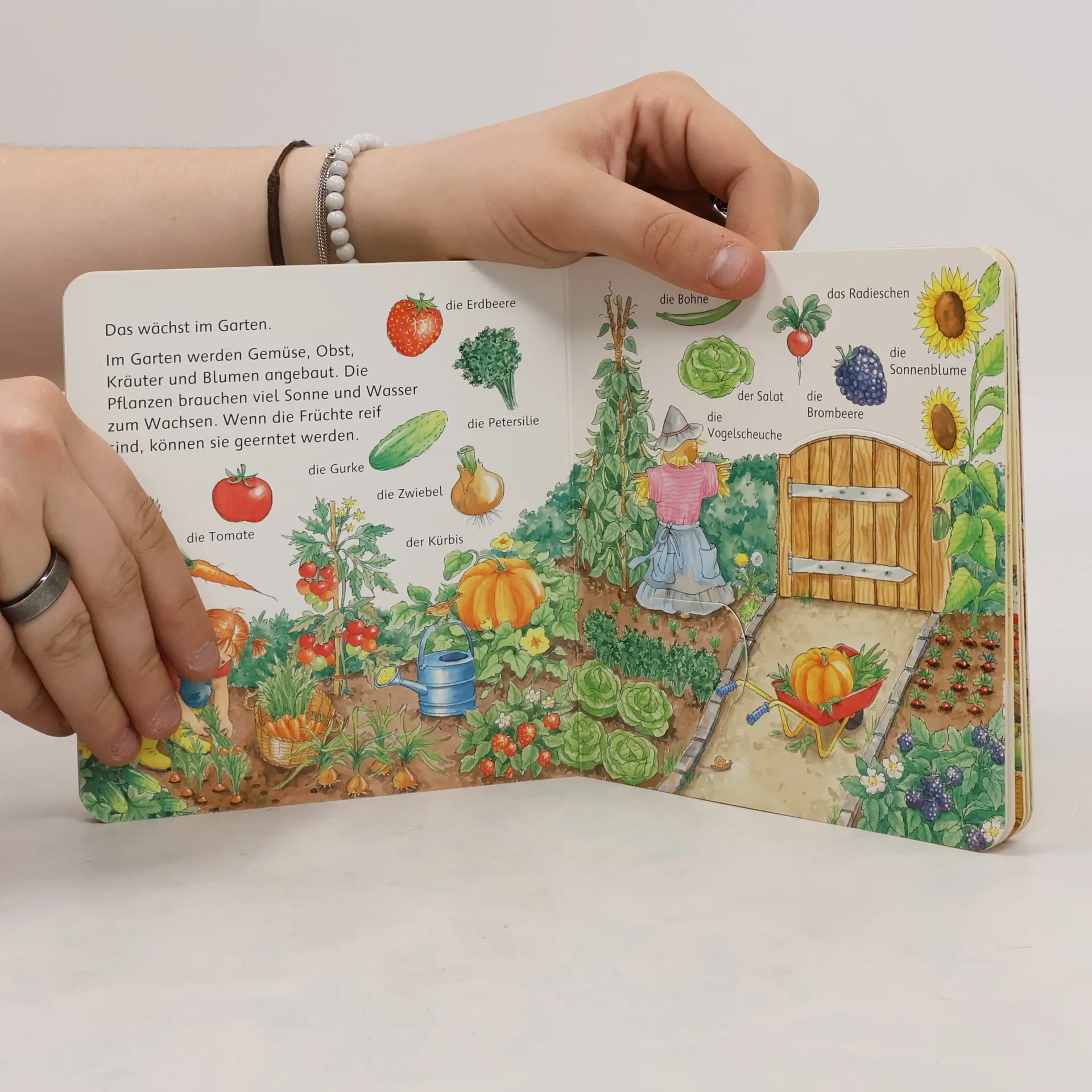 Wörter können durch detailreiche Illustrationen und Klappen erlebt werden. Kinder lernen die Nutztiere, Fahrzeuge und das Leben im Stall und auf der Weide kennen.