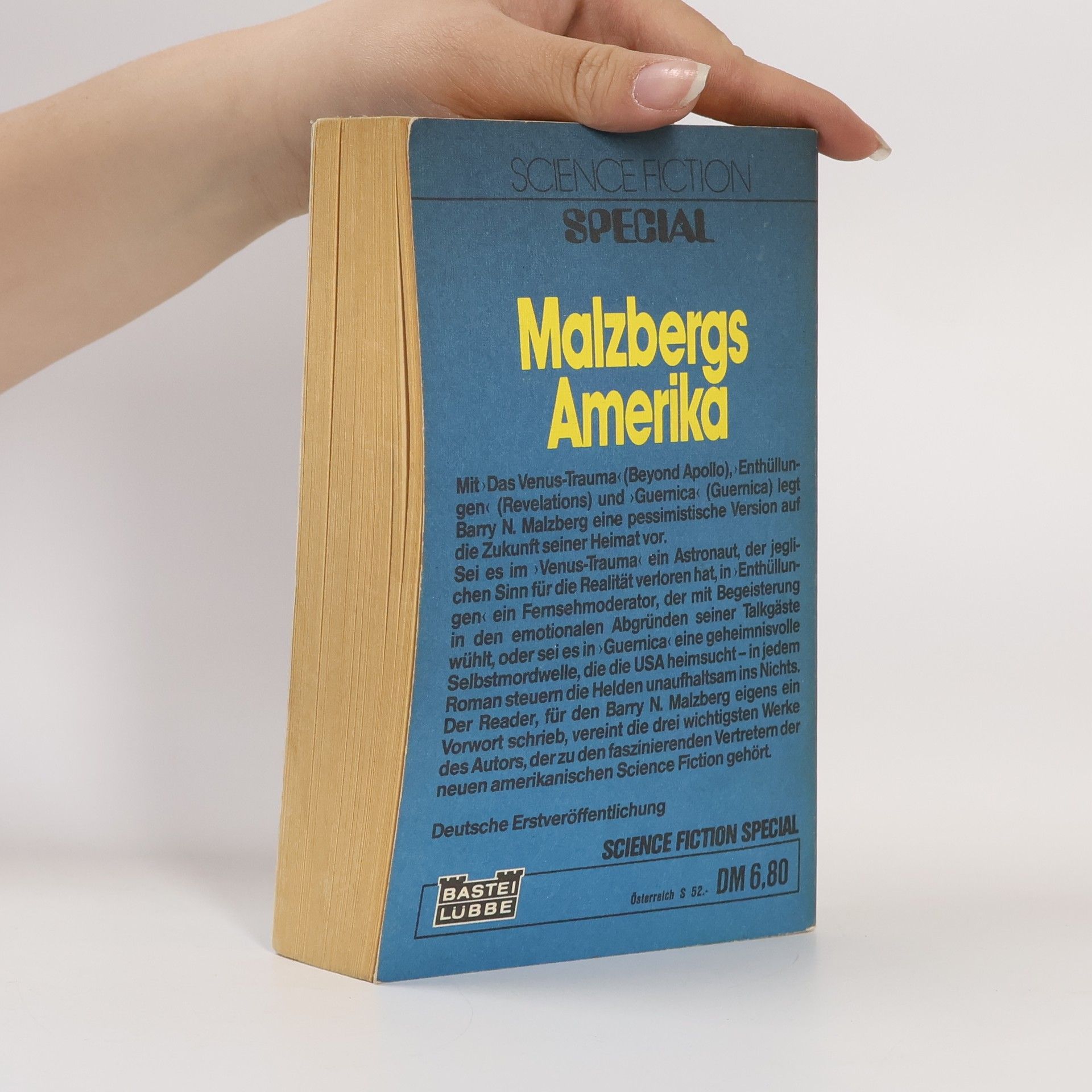 Mit Enthüllungen (Revelations, 1972), Das Venustrauma (Beyond Apollo, 1972) und Guernica (Guernica Night, 1974) legt Barry N. Malzberg eine pessimistische Version auf die Zukunft seiner Heimat vor.Sei es im Venus-Trauma ein Astronaut, der jeglichen Sinn für die Realität verloren hat, in Enthüllungen ein Fernsehmoderator, der mit Begeisterung in den emotionalen Abgründen seiner Talkgäste wühlt, oder sei es in Guernica eine geheimnisvolle Selbstmordwelle, die die USA heimsucht - in jedem Roman steuern die Helden unaufhaltsam ins Nichts. Der Reader, für den Barry N. Malzberg eigens ein Vorwort schrieb, vereint die drei wichtigsten Werke des Autors, der zu den faszinierenden Vertretern der neuen amerikanischen Science Fiction gehört.