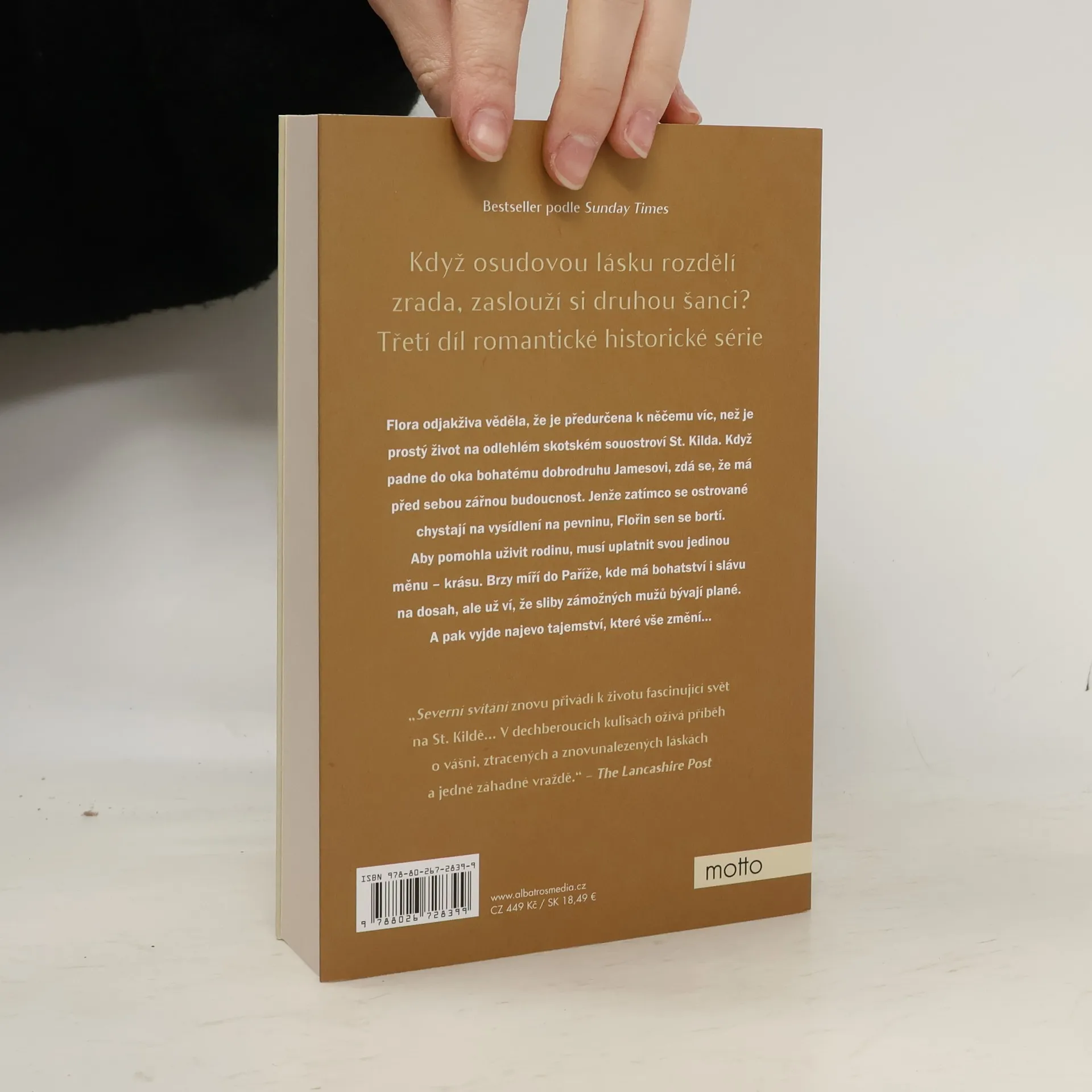 Flora odjakživa věděla, že je předurčena k něčemu víc, než je prostý život na odlehlém skotském souostroví St. Kilda. Když padne do oka bohatému dobrodruhu Jamesovi, zdá se, že má před sebou zářnou budoucnost. Jenže zatímco se ostrované chystají na vysídlení na pevninu, Flořin sen sebortí. Aby pomohla uživit rodinu, musí uplatnit svou jedinou měnu – krásu. Brzy míří do Paříže, kde má bohatství i slávu na dosah, ale už ví, že sliby zámožných mužů bývají plané. A pak vyjde najevo tajemství, které vše změní…