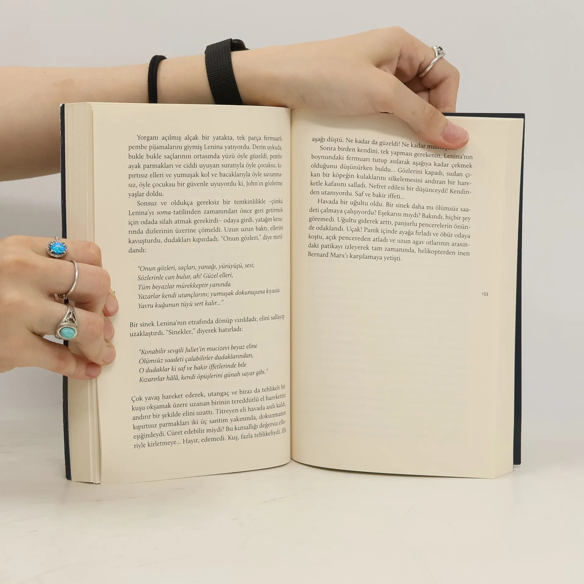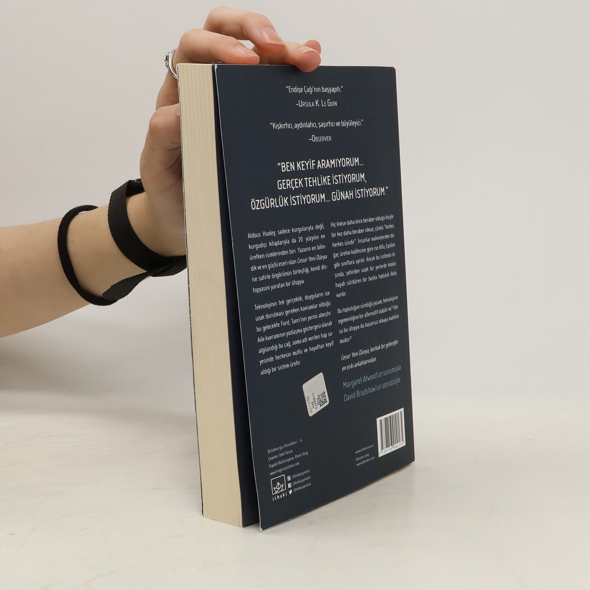 Alternate cover edition could be found here. "Cesur Yeni Dünya" bizi "Ford'dan sonra 632 yılına" götürür. Bu dünyanın cesur insanları kapısında "Cemaat, Özdeşlik, İstikrar" yazan Londra Merkez Kuluçka ve Şartlandırma Merkezi'nde üretilirler. Kadınların döllenmesi yasak ve ayıp olduğu için, "annelik' ve 'babalık' pornografik birer kavram olarak görülür Toplumsal istikrarın temel güvencesi olan şartlandırma hipnopedya -uykuda eğitim- ile sağlanır. Hipnopedya sayesinde herkes mutludur; herkes çalışır ve herkes eğlenir. "Herkes herkes içindir." "Cesur Yeni Dünya"nın önemi yalnızca ardılları için bir standart oluşturması ve karamsar bir gelecek tasarımının güçlü betimlemesiyle değil, aynı zamanda 'birey yok edilse de süren macerasının' sağlam bir üslupta anlatılmasıyla da ilgili. Huxley, yapıtını ütopa geleneğinin kuru anlatımının dışına çıkarıp 'iyi edebiyat' kategorisine yükseltiyor.
