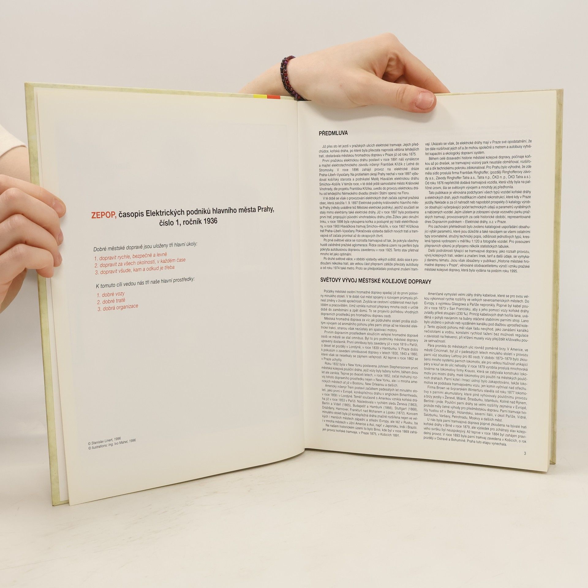 Publikace je de facto chronologickým přehledem historie vývoje tramvajové dopravy v Praze a jejího vozového parku. Tento „atlas“ doplňuje bohatý obrazový materiál – dobové fotografie a bokorysy jednotlivých typových řad všech druhů používaných vozů. Text doplňují přehledné tabulky s evidencí vozů a jejich základními technickými parametry.