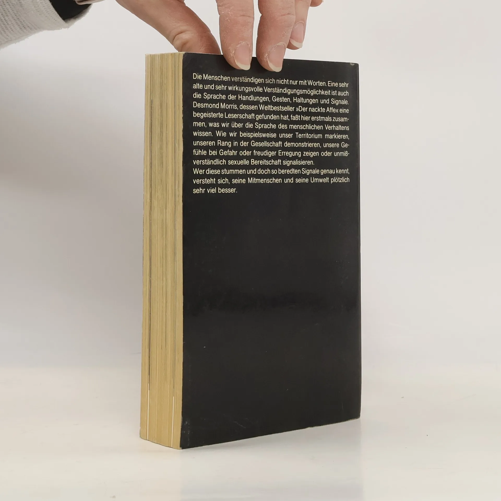 Die Menschen verständigen sich nicht nur mit Worten. Eine sehr alte und sehr wirkungsvolle Verständigungsmöglichkeit ist auch die Sprache der Handlungen, Gesten, Haltungen und Signale. Desmond Morris, dessen Weltbestseller \"Der nackte Affe\" eine begeisterte Leserschaft gefunden hat, faßt hier erstmals zusammen, was wir über die Sprache des menschlichen Verhaltens wissen. Wie wir beispielsweise unser Territorium markieren, unseren Rang in der Gesellschaft demonstrieren, unsere Gefühle bei Gefahr oder freudiger Erregung zeigen oder unmißverständlich sexuelle Bereitschaft signalisieren. Wer diese stummen und doch so beredten Signale genau kennt, versteht sich, seine Mitmenschen und seine Umwelt plötzlich sehr viel besser.