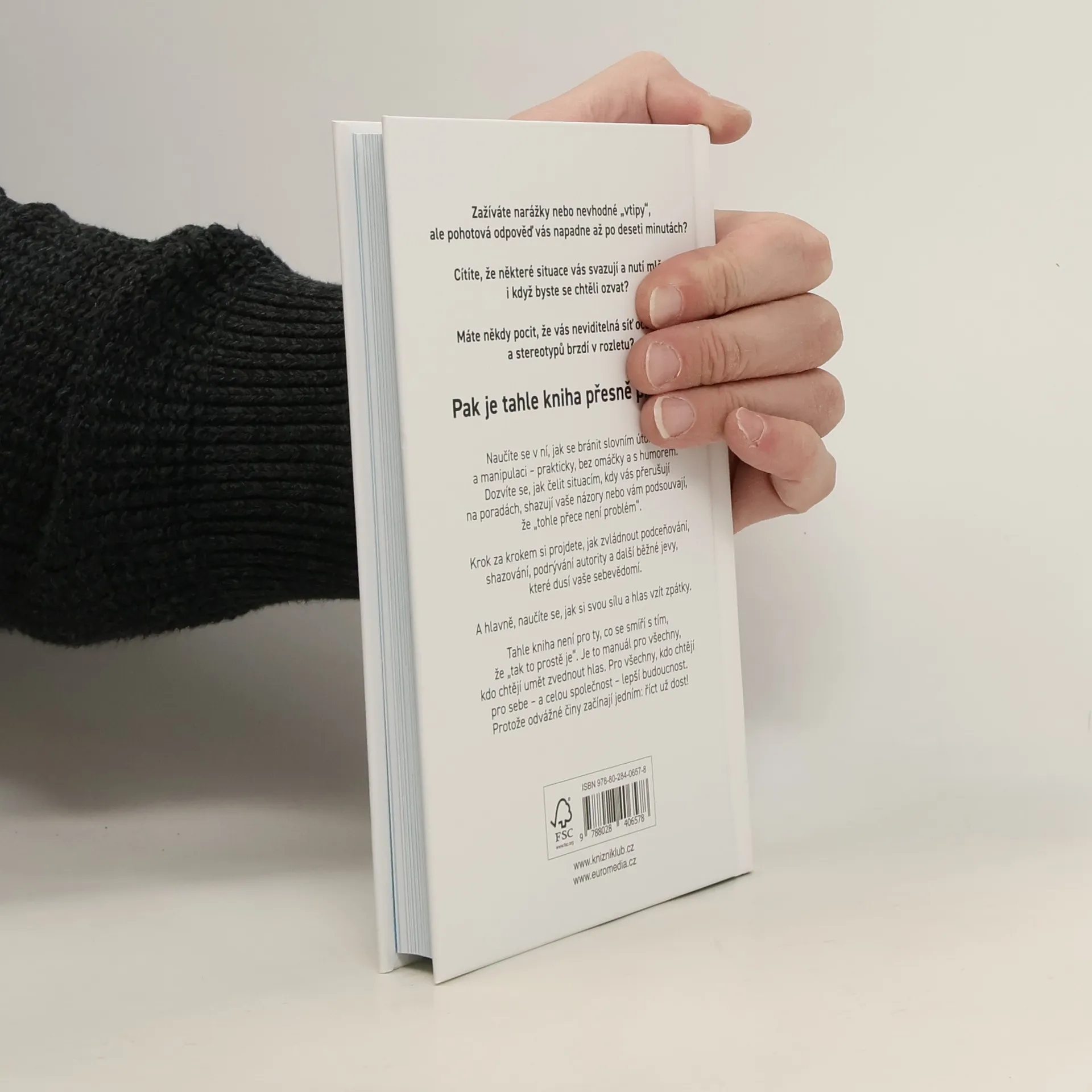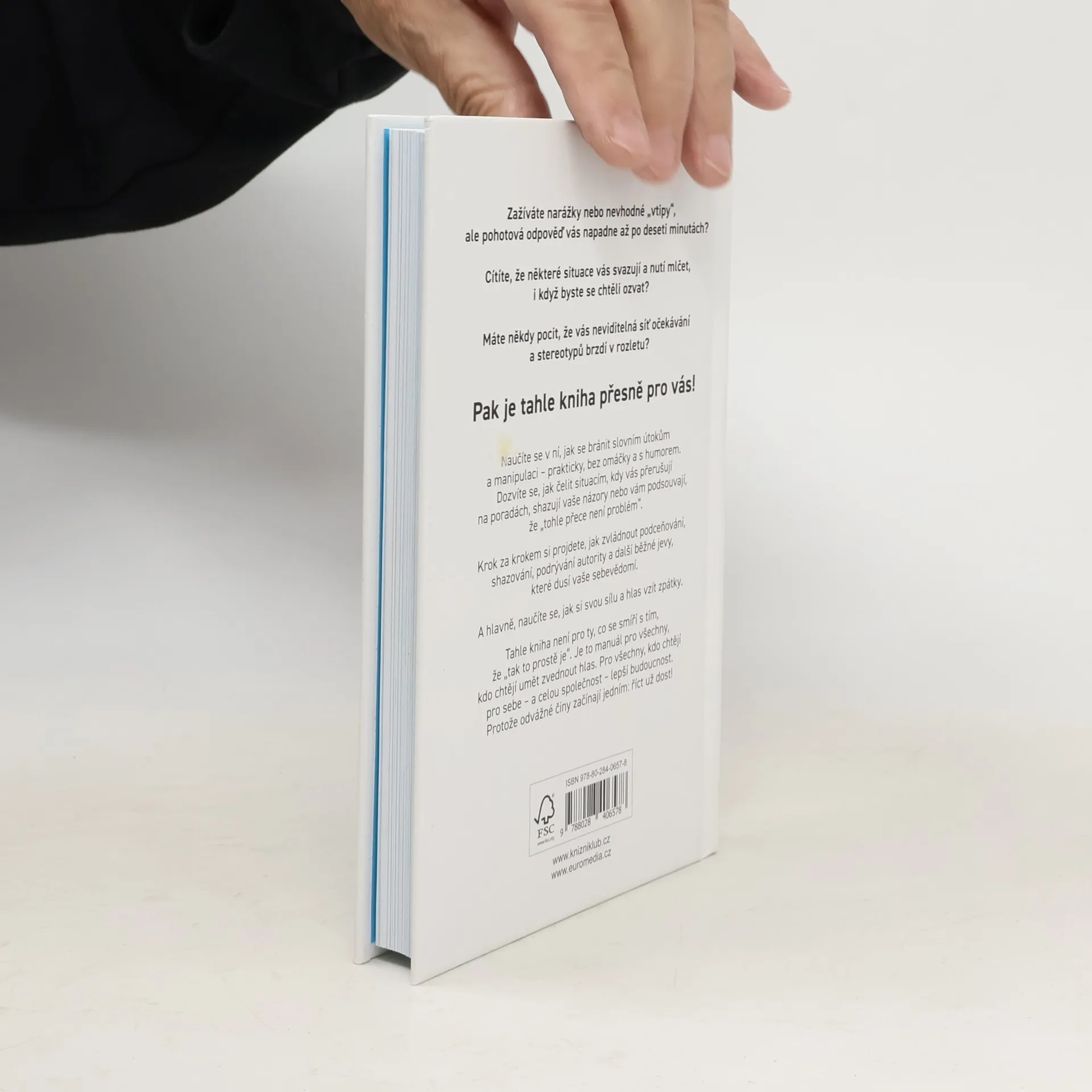 Zažíváte narážky nebo nevhodné „vtipy“, ale vtipná odpověď vás napadne až po deseti minutách? Cítíte, že některé situace vás svazují a nutí mlčet, i když byste se chtěli ozvat? Máte někdy pocit, že vás neviditelná síť očekávání a stereotypů brzdí v rozletu? Pak je tahle kniha přesně pro vás! Naučíte se v ní, jak se bránit slovním útokům a manipulaci – prakticky, bez omáčky a s humorem. Dozvíte se, jak čelit situacím, kdy vás přerušují na poradách, shazují vaše názory nebo vám podsouvají, že „tohle přece není problém“. Krok za krokem si projdete, jak zvládnout podceňování, shazování, podrývání autority a další běžné jevy, které dusí vaše sebevědomí. A hlavně, naučíte se, jak si svou sílu a hlas vzít zpátky. Tahle kniha není pro ty, co se smíří s tím, že „tak to prostě je“. Je to manuál pro všechny, kdo chtějí umět zvednout hlas. Pro všechny, kdo chtějí pro sebe – a celou společnost – lepší budoucnost. Protože odvážné činy začínají jedním: říct už dost.