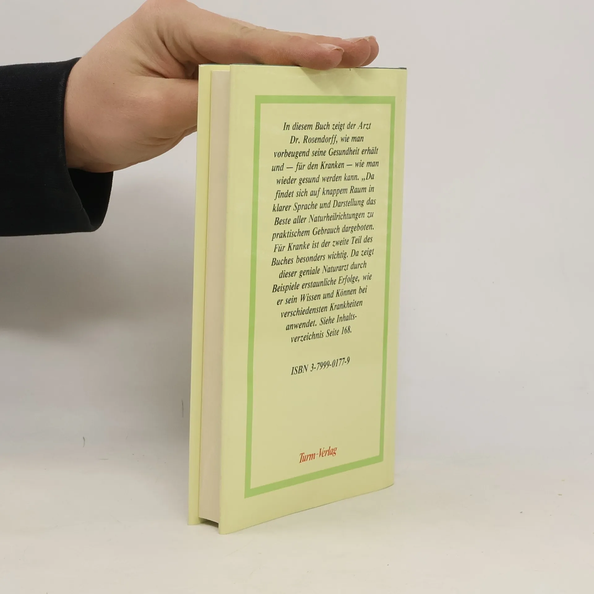 In diesem Buch zeigt der Arzt Dr. Rosendorff, wie man vorbeugend seine Gesundheit erhält und – für den Kranken – wie man wieder gesund werden kann. „Da findet sich auf knappem Raum in klarer Sprache und Darstellung das Beste verschiedener Naturheilrichtungen zu praktischem Gebrauch dargeboten. Für Kranke ist der zweite Teil des Buches besonders wichtig. Da zeigt dieser geniale Naturarzt durch Beispiele, wie er sein Wissen und Können bei verschiedensten Krankheiten anwendet.“