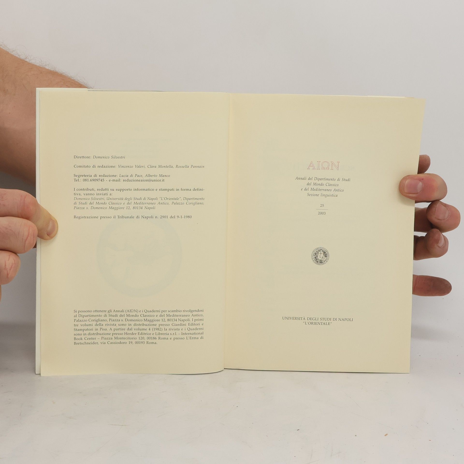 Annali del Dipartimento di Studi del Mondo Classico e del Mediterraneo Antico Sezione linguistica 25/2003, Autorenkollektiv