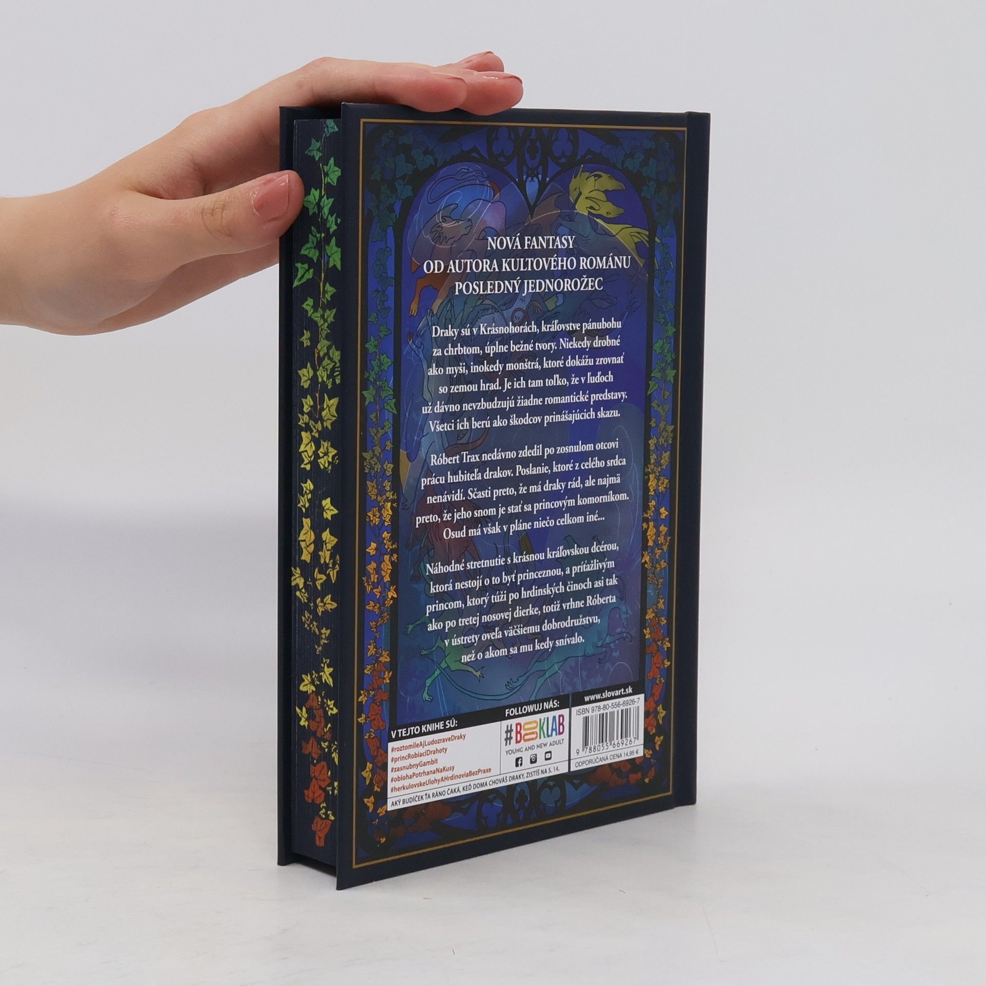Nový cosy fantasy román od autora celosvetového bestselleru Posledný jednorožec!Draky sú v Krásnohorách, kráľovstve pánubohu za chrbtom, úplne bežné tvory. Niekedy drobné ako myši, inokedy monštrá, ktoré dokážu zrovnať so zemou hrad. Je ich tam toľko, že v ľuďoch už dávno nevzbudzujú žiadne romantické predstavy. Všetci ich berú ako škodcov prinášajúcich skazu alebo prinajmenšom mrzutosti.Gaius Aurélius Konštantín Heliogabalus Trax (ktorý by bol oveľa radšej, keby ho ľudia volali jednoducho Róbert) nedávno zdedil po zosnulom otcovi prácu hubiteľa drakov. Poslanie, ktoré z celého srdca nenávidí. Sčasti preto, že má draky rád, lebo s nimi cíti akúsi zvláštnu spriaznenosť, ale najmä preto, že jeho snom odjakživa bolo prekročiť tieň svojho skromného pôvodu a stať sa princovým komorníkom. Azda netreba dodávať, že osud má v pláne niečo celkom iné... Náhodné stretnutie s krásnou kráľovskou dcérou, ktorá netúži byť princeznou, a príťažlivým princom, ktorý by hrdinské činy radšej prenechal iným, ho totiž vrhne v ústrety oveľa väčšieho dobrodružstva, než o akom sa mu kedy snívalo.