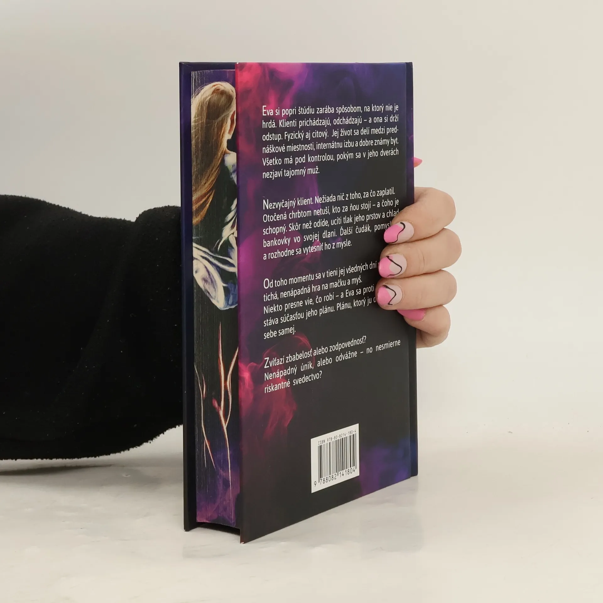 Eva si popri štúdiu zarába spôsobom, na ktorý nie je hrdá. Klienti prichádzajú, odchádzajú — a ona si drží odstup. Fyzický aj citový. Jej život sa delí medzi prednáškové miestnosti, internátnu izbu a dobre známy byt. Všetko má pod kontrolou, pokým sa v jeho dverách nezjaví tajomný muž. Nezvyčajný klient.Nežiada nič z toho, za čo zaplatil.Otočená chrbtom netuší, kto za ňou stojí – a čoho je schopný. Skôr než odíde, ucíti tlak jeho prstov a chlad bankovky vo svojej dlani. Ďalší čudák, pomyslí si a rozhodne sa vytesniť ho z mysle.Od toho momentu sa v tieni jej všedných dní rozbehne tichá, nenápadná hra na mačku a myš.Niekto presne vie, čo robí – a Eva sa proti svojej vôli stáva súčasťou jeho plánu. Plánu, ktorý ju donúti čeliť sebe samej.Zvíťazí zbabelosť alebo zodpovednosť?Nenápadný únik, alebo odvážne – no nesmierne riskantné svedectvo?