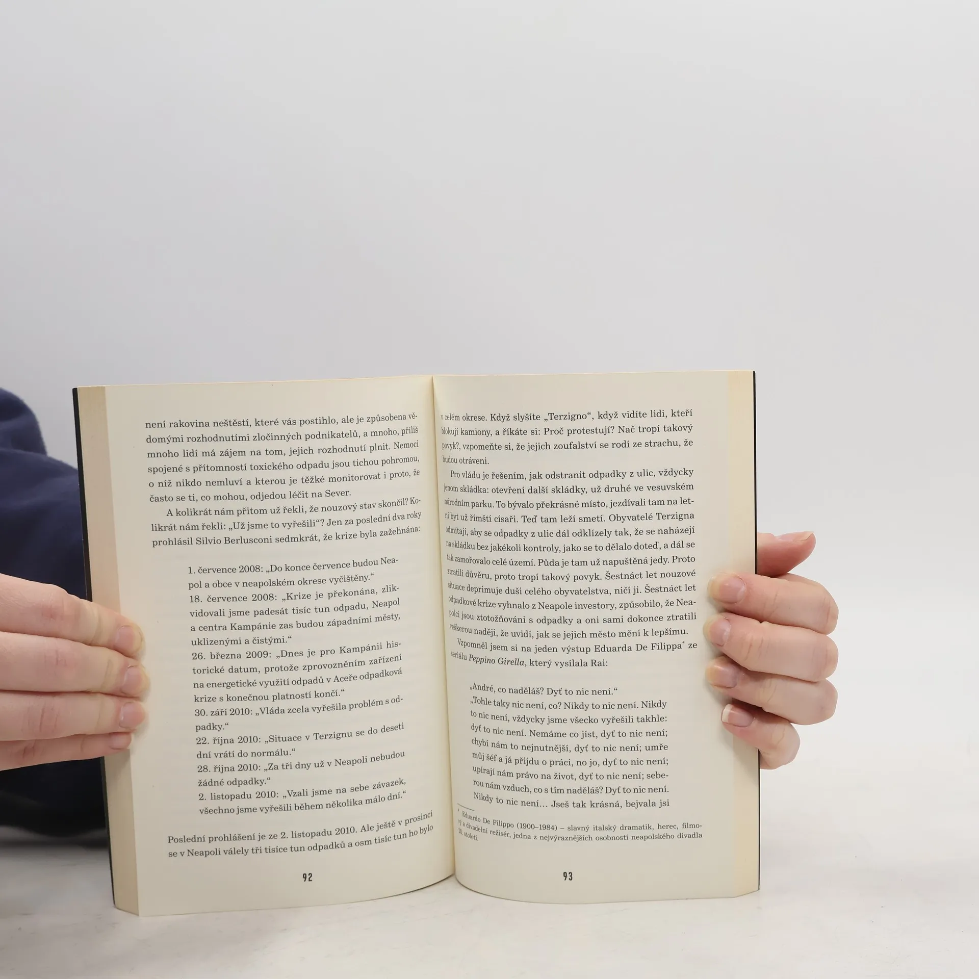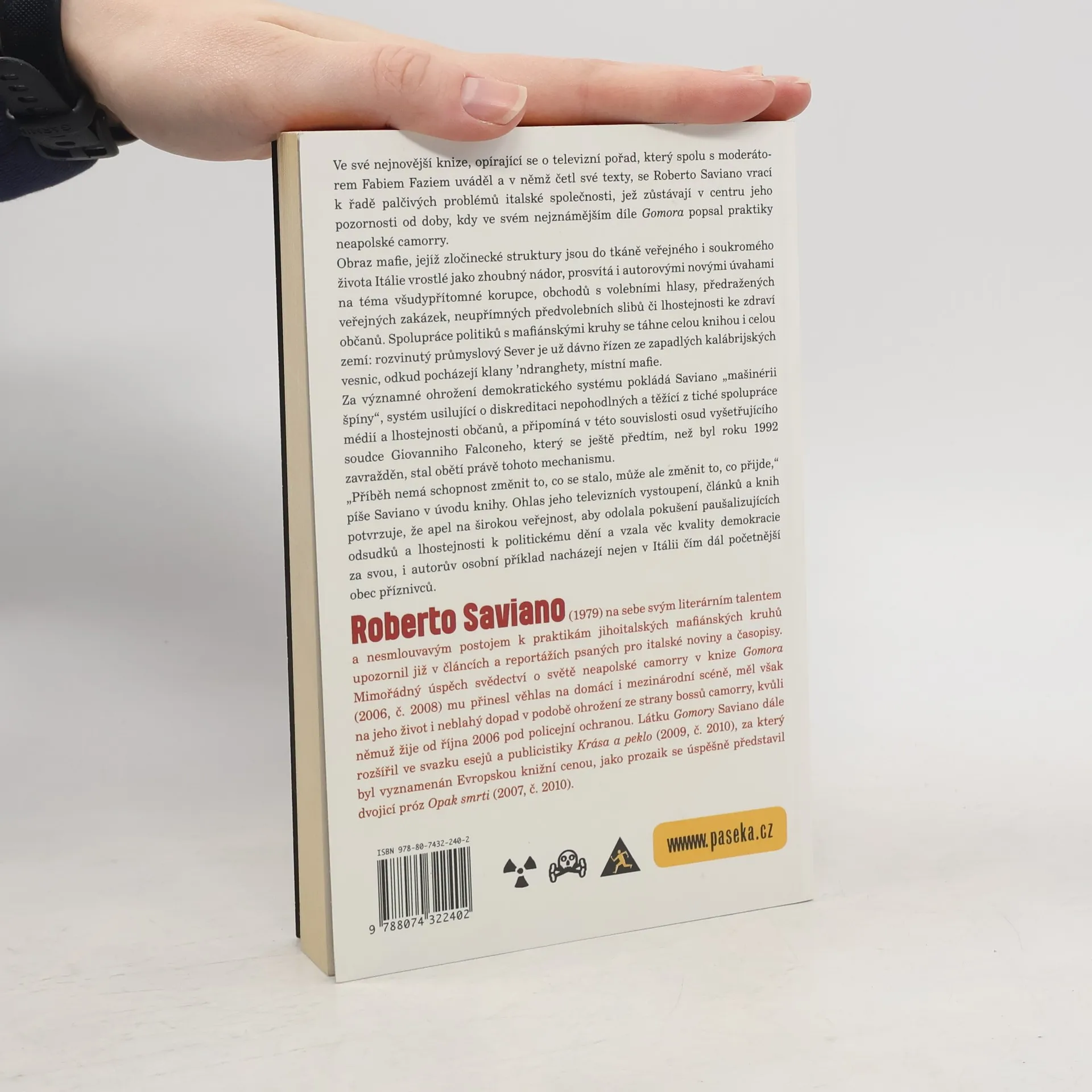 Světoznámý italský novinář se ve své nejnovější knize vrací k řadě palčivých problémů italské společnosti, které jsou v centru jeho pozornosti již od doby, kdy ve své nejslavnější knize Gomora strhujícím způsobem popsal praktiky neapolské mafie. Nová znepokojivá zjištění předkládá zejména v oblasti pronikání mafiánských struktur z jihu na sever Itálie, znovu bilancuje akutní problém nezákonné likvidace toxických odpadů, působivě líčí boj kalábrijského kněze o vytvoření centra pro postižené v domě zabaveném mafii, která jej však odmítá předat novým vlastníkům. Tak jako v minulosti, i v nové knize zaujme Saviano svým otevřeným, naléhavým a přitom čtivým stylem a zejména v úvahách věnovaných všudypřítomné korupci, neupřímnosti předvolebních slibů politiků či manipulovatelnosti médií má rozhodně co říci i čtenářům daleko za italskými hranicemi.
